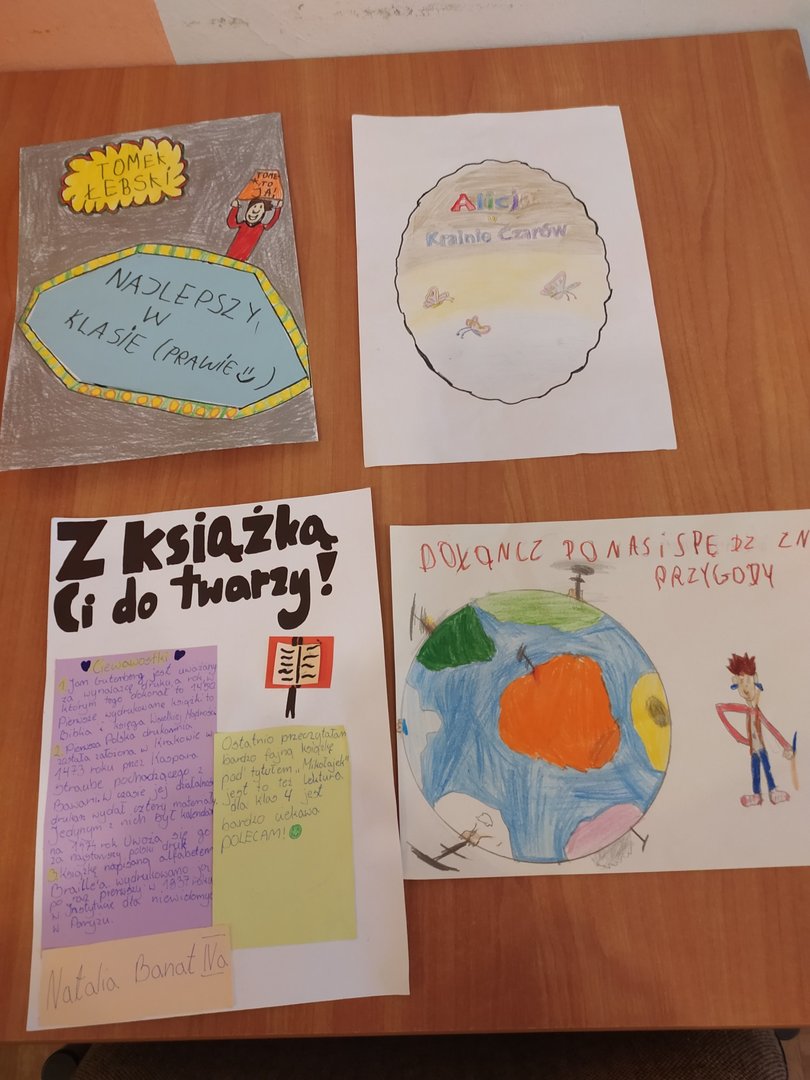 Październik to Międzynarodowy Miesiąc Bibliotek Szkolnych z tej okazji biblioteka szkolna zorganizowała między innymi konkurs biblioteczny „Przeczytaj i Ty!”. Zadaniem było stworzenie pracy plastycznej promującej wybrane książki, tak aby zachęcić inne osoby do ich przeczytania.