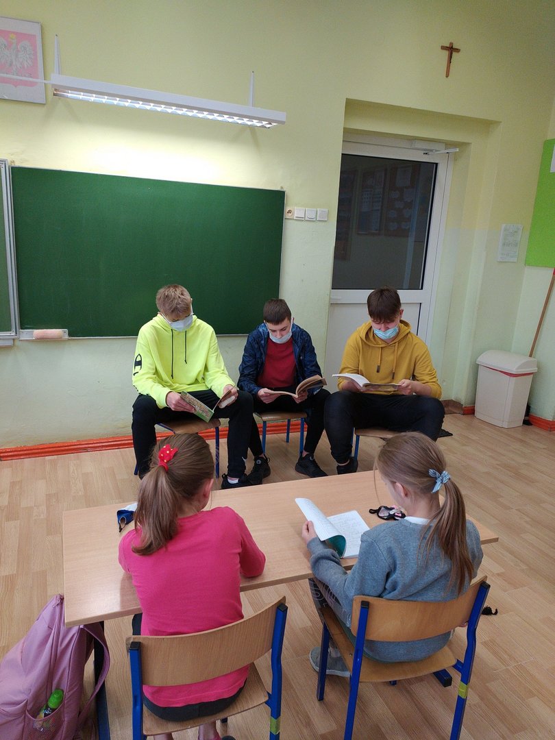 Uczniowie klas 0-3 wysłuchały jednej z przygód pt. „Franklin mówi PRZEPRASZAM” w comiesięcznym czytaniu klasom młodszym przez nauczyciela bibliotekarza. Początkowo do czytania młodszym uczniom zostali włączeni uczniowie z klasy 8c, ale ze względu na szybki przyrost zakażeń COVID – 19 musieliśmy zrezygnować z ich udziału. Przygoda Franklina posłużyła do zastanowienia się: w jaki sposób można rozwiązywać konflikty?