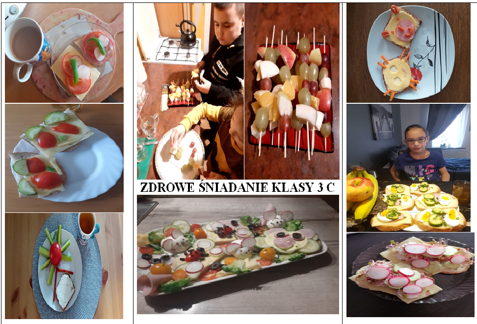 W dniu 13.11.2020 uczniowie klas I-III podczas nauki zdalnej , brali udział w tegorocznej szkolnej akcji „Moje zdrowe śniadanie”. Ideą akcji jest promowanie zdrowego odżywiania oraz stylu życia od najmłodszych lat. Uczniowie z pomocą rodziców przygotowywali kanapki, sałatki, płatki i inne zdrowe przekąski i uwieczniali to na fotografiach, którymi później mogli się pochwalić wysyłając swoich wychowawcą. Śniadanka były zdrowe , kolorowe i bardzo apetyczne! Zobaczcie sami J Zapraszamy na smaczne inspiracje śniadaniowe w wykonaniu klas trzecich .