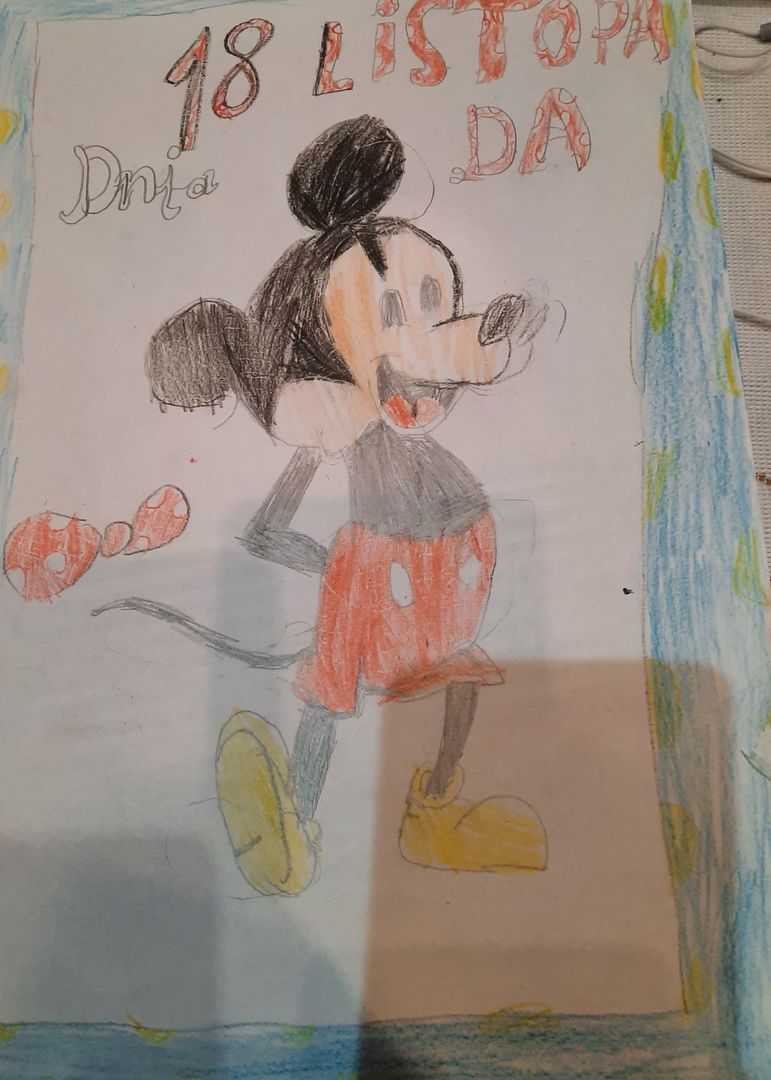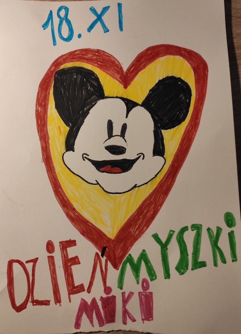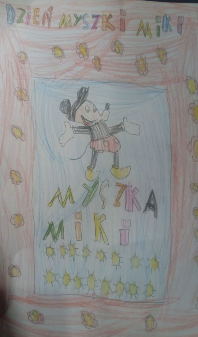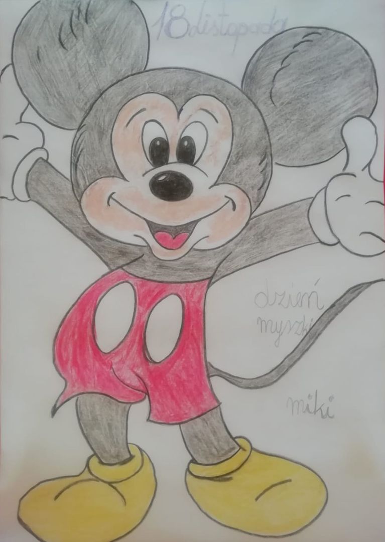Obejrzeliśmy ciekawostki dotyczące powstawania tej postaci, bajkę o Myszce Miki. Rysowaliśmy także swoje prace. Oto one: