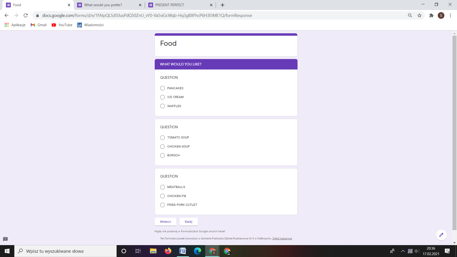 Uczniowie klas 6 realizowali w trakcie lekcji online języka angielskiego autorski projekt pod hasłem „Healthy lifestyle” ("Zdrowy styl życia"). Zadanie obejmowało następujące aktywności: stworzenie z wykorzystaniem e-narzędzi ankiet odnośnie ulubionych potraw (Seweryn Zając, klasa 6 a), opracowanie przepisów w języku angielskim (klasa 6 a - Wiktoria Zaborowska, klasa 6 b - Kacper Szarkowski i Lilianna Wesołowska), przygotowanie zdrowych śniadań podczas lekcji online (Łukasz Raciniewski, klasa 6 a, Wojciech Knap, klasa 6 a) lub przesłanie fotografii posiłku (klasa 6 a, 6 b, 6 c), wykonanie prezentacji multimedialnej o zdrowym stylu życia (klasa 6 b - Kacper Szarkowski, Maks Pyrz).