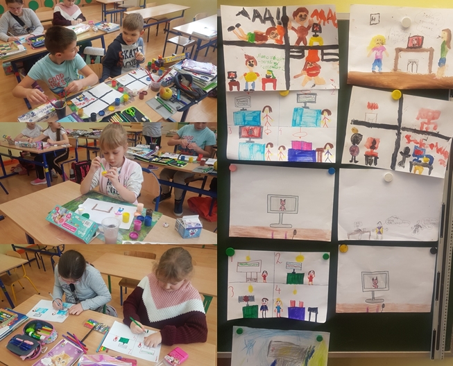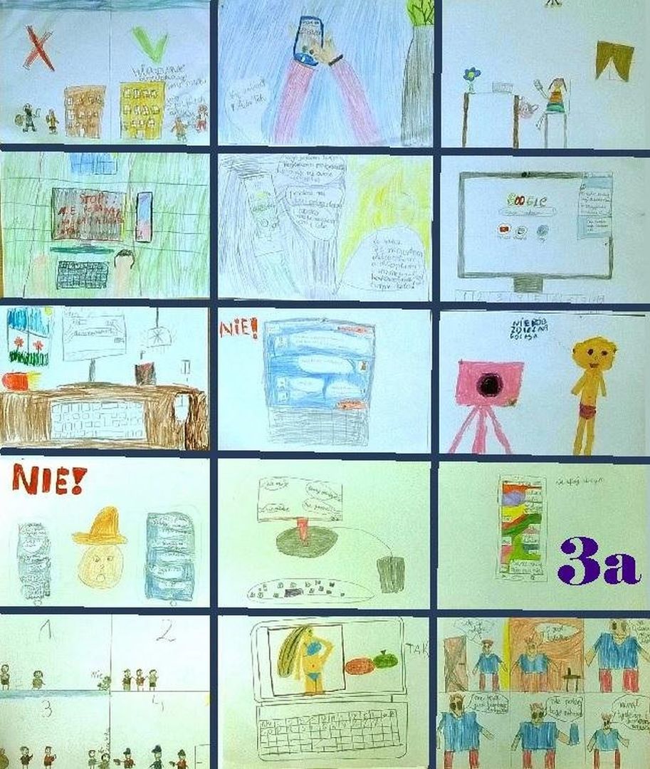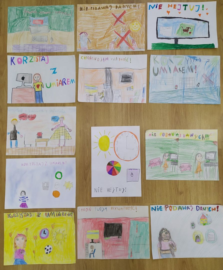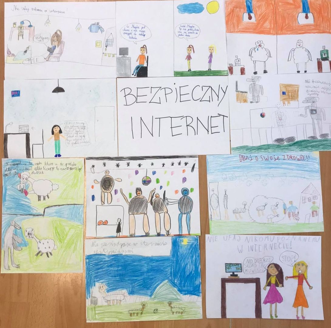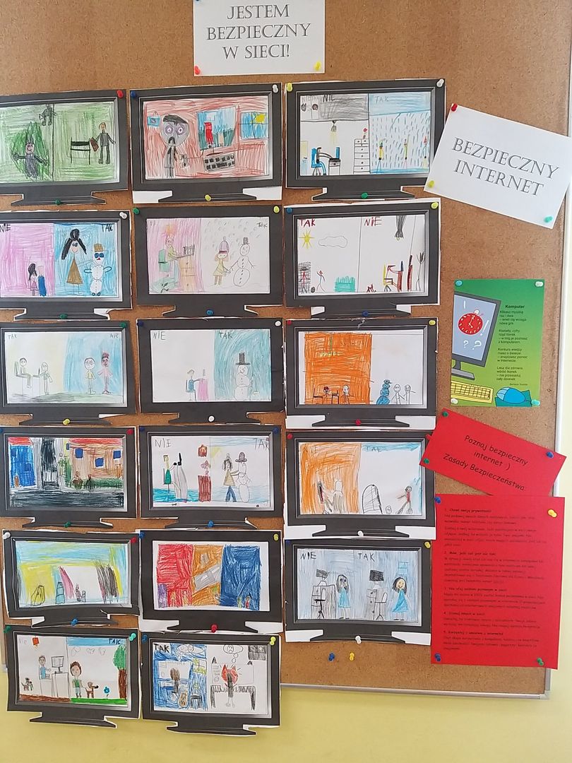 W okresie 08 - 12.02. 2021 uczniowie klas 1-3 brali udział w zajęciach dotyczących bezpiecznego korzystania z Internetu. Uczniowie oglądali filmy edukacyjne, a następnie przygotowali prace plastyczne. Oto one.