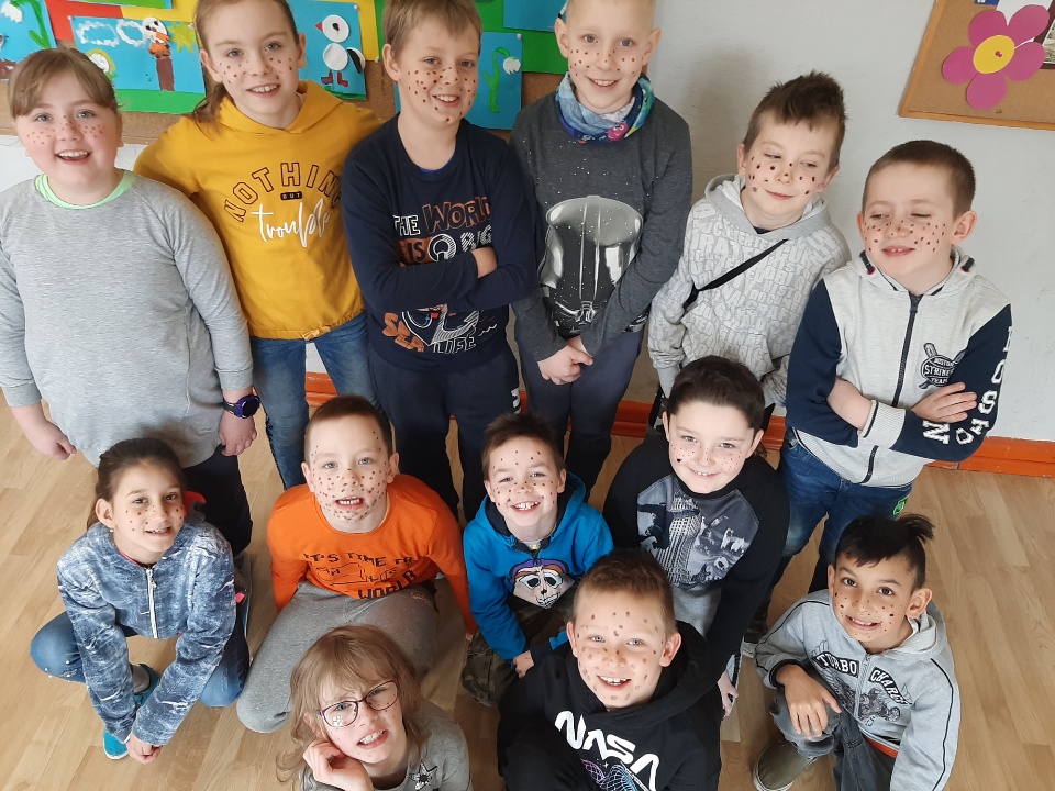 Pierwszego marca uczniowie klasy 2 c radośnie świętowali Dzień Piegów. Niektórzy mogą pochwalić się swoimi cudownymi piegami, a Ci co ich nie mają mogli w tym dniu dumnie prezentować namalowane na nosie piegi.