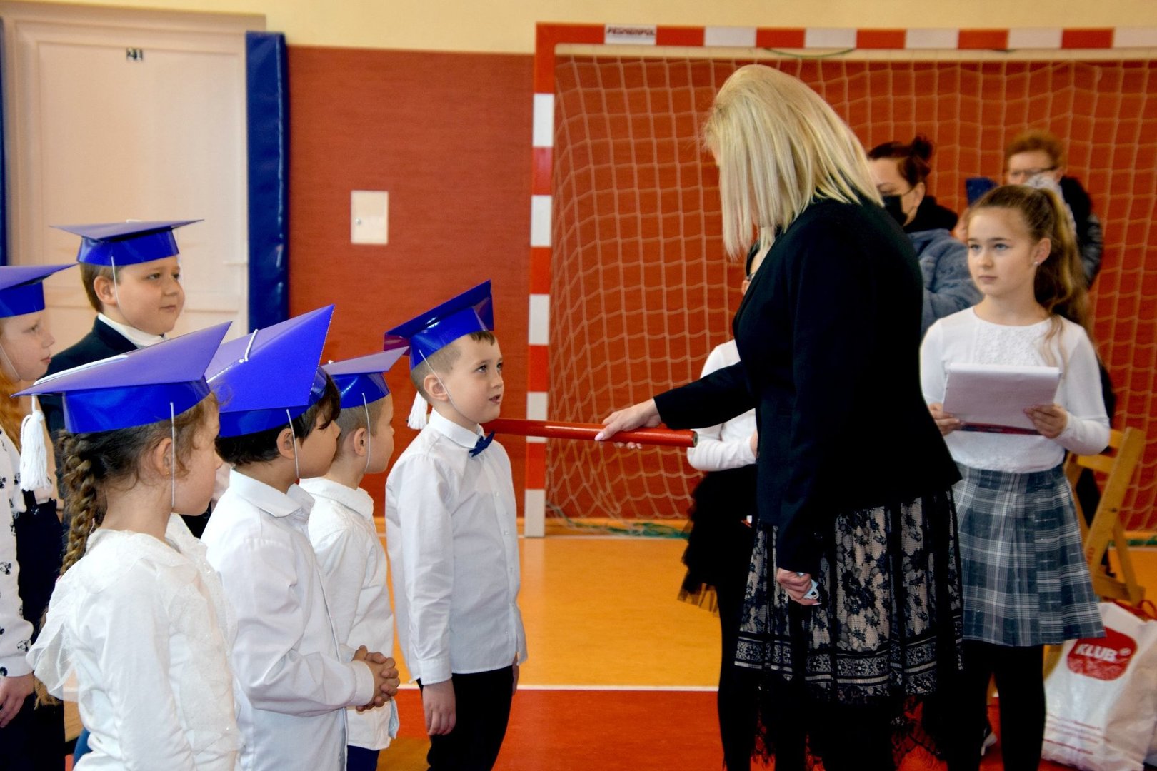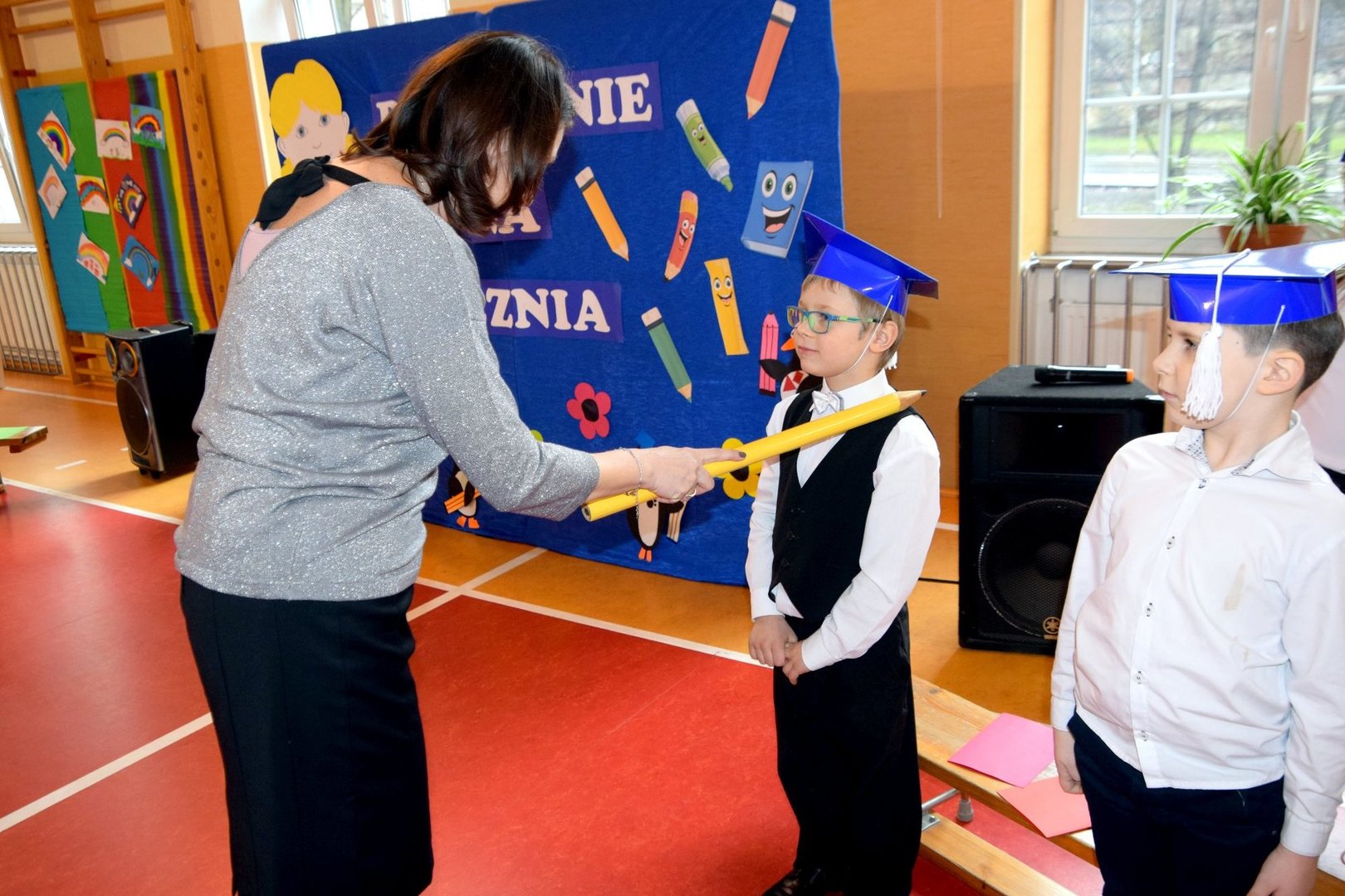W piątek 12 marca nasi pierwszoklasiści zostali oficjalnie przyjęci w poczet naszej szkolnej społeczności. Była uroczysta przysięga i tradycyjne pasowanie. Uczniowie przygotowali krótki, ale różnorodny program artystyczny, były wiersze i piosenki w wersji polskiej i angielskiej. Na widowni rodzice i dziadkowie, wszyscy bardzo dumni i wzruszeni. Naprawdę były powody. Wszyscy bohaterowie tego dnia zaprezentowali się na piątkę!!! A może nawet na szóstkę! Zapraszamy do galerii zdjęć i na krótki filmik z części artystycznej.