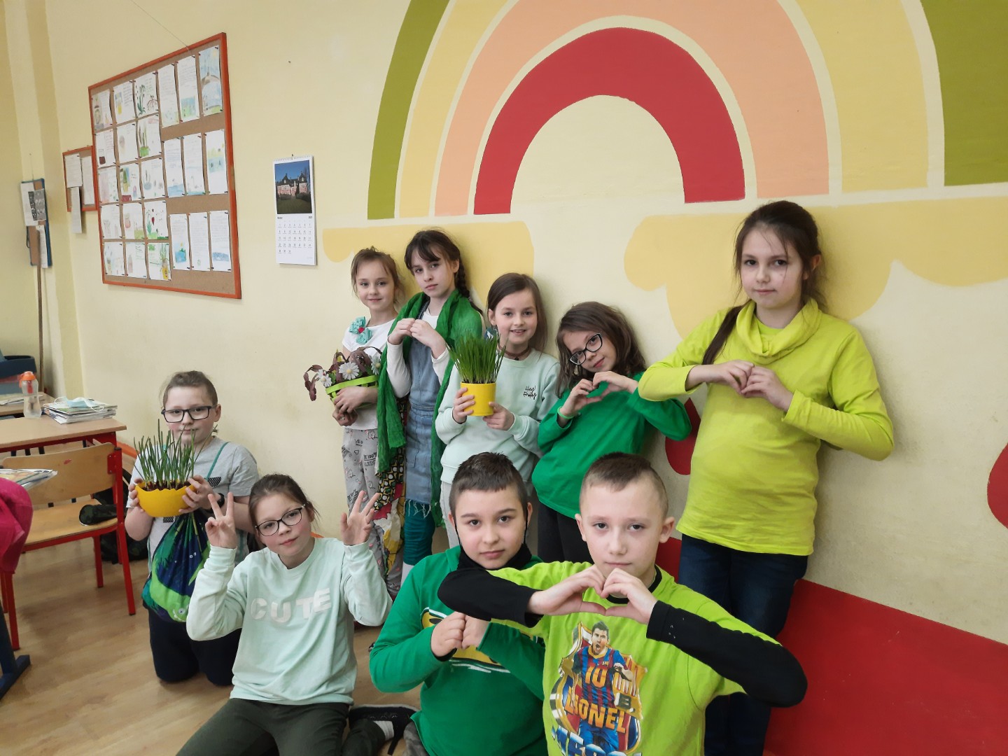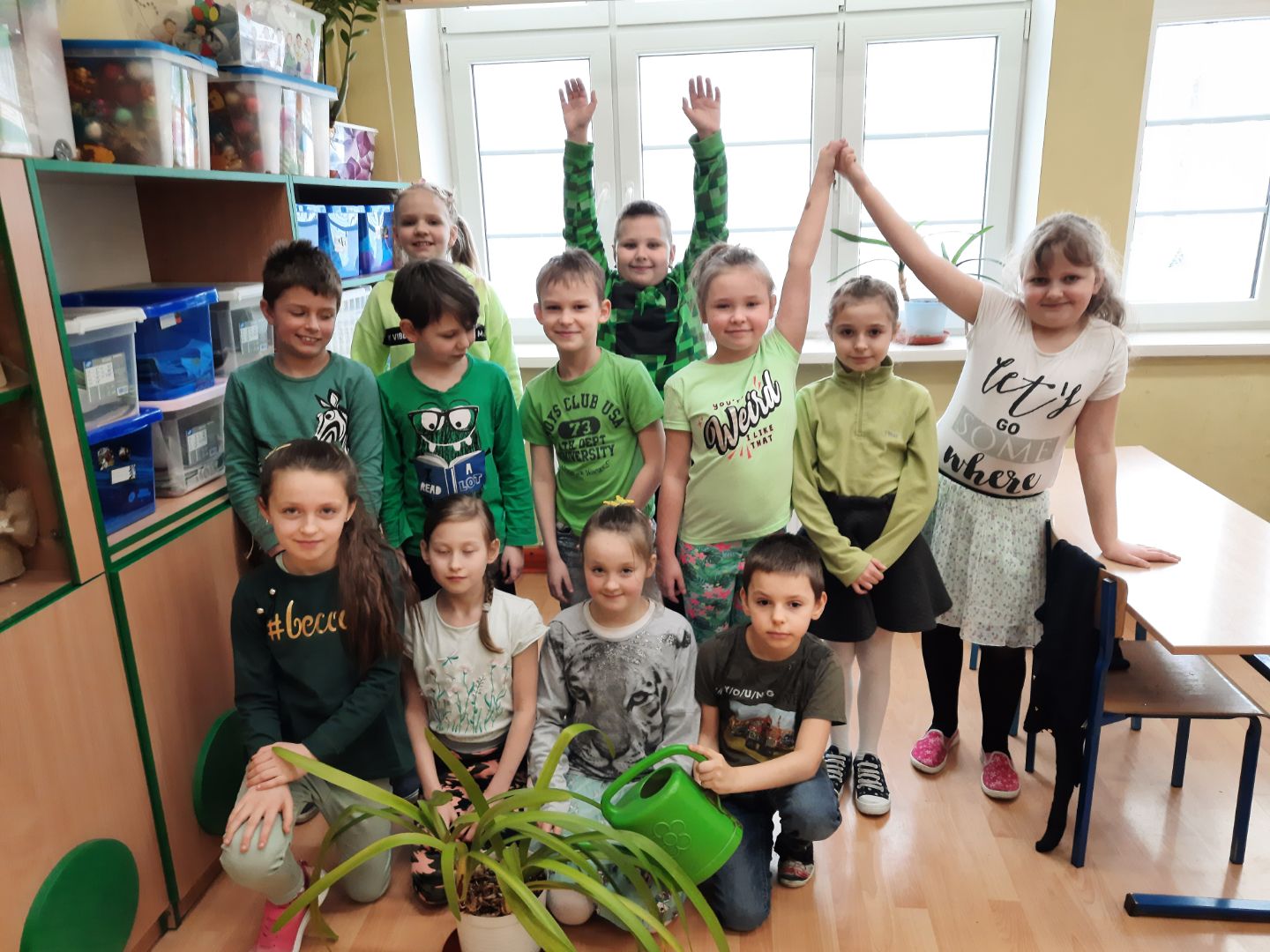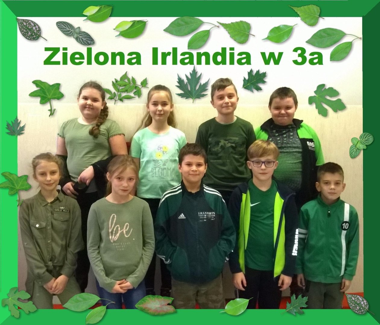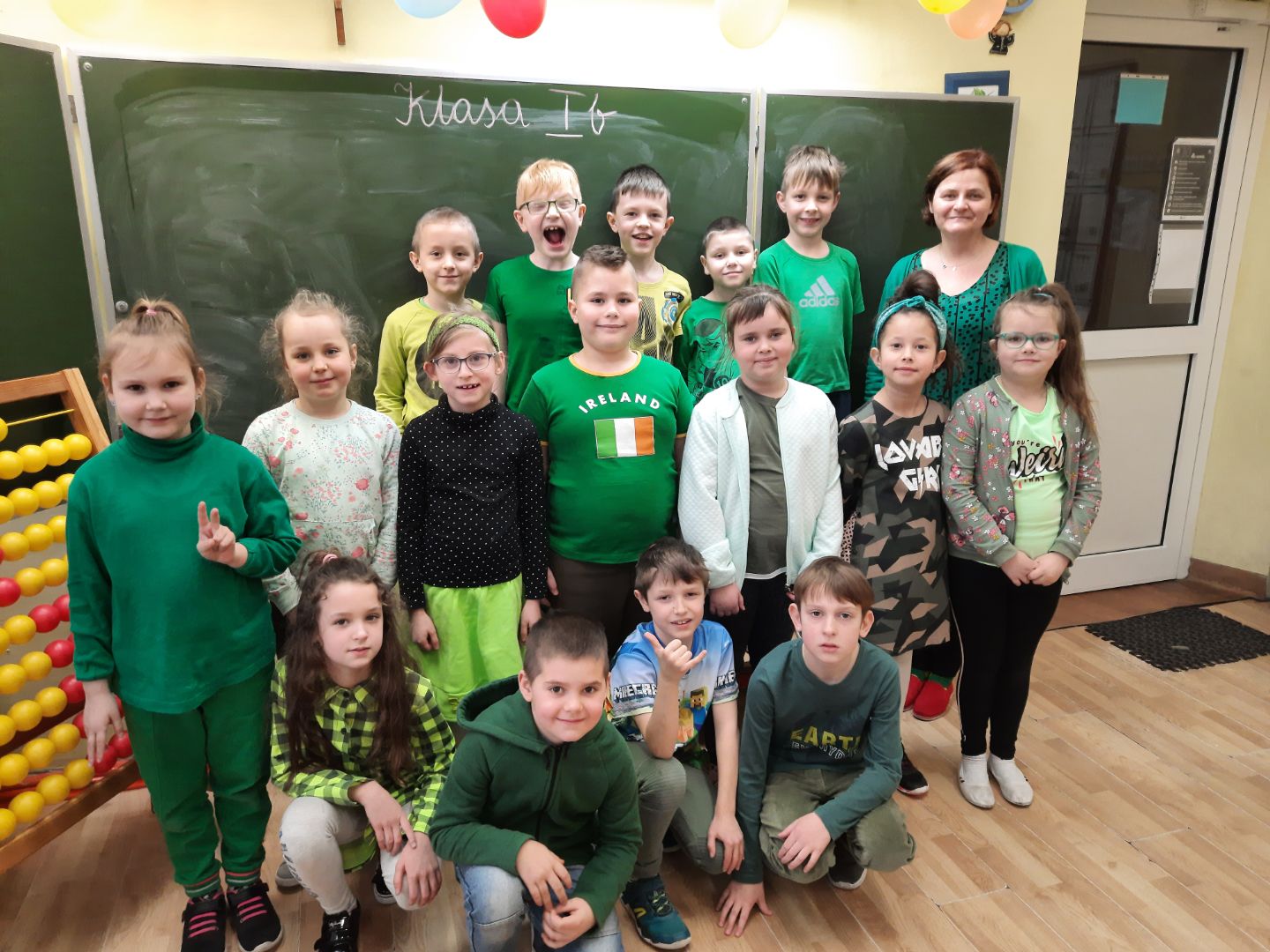 17 marca to narodowe święto Irlandii.W tym roku juz po raz kolejny mamy możliwośc poznac tradycje i zwyczaje tego kraju. Po tym jak nasi uxczniowie wzięli udzial w ogólnopolskim konkursie "Greening" i powialo Irlandią z ich pieknych prac, dzisiaj mamy "Dzień na zielono"Zielony to narodowy kolor Irlandczyków, moze dlatego że ten kraj nazywany jest"zielona wyspą".jednym z narodowych symboli jest zielona koniczynka a 17 marca Irlandczycy ubierają zielone stroje, najgorliwsi malują nawet twarze i włosy na ten pogodny wiosenny kolor.Na lekcjach angielskiego uczniowie klas 0-III w tym tygodniu dowiedzą sie wielu ciekawych rzeczy o tym kraju a dziś w naszych klasach było naprawdę zielono!!!!Zobaczcie sami! Jak zielono nam!!!