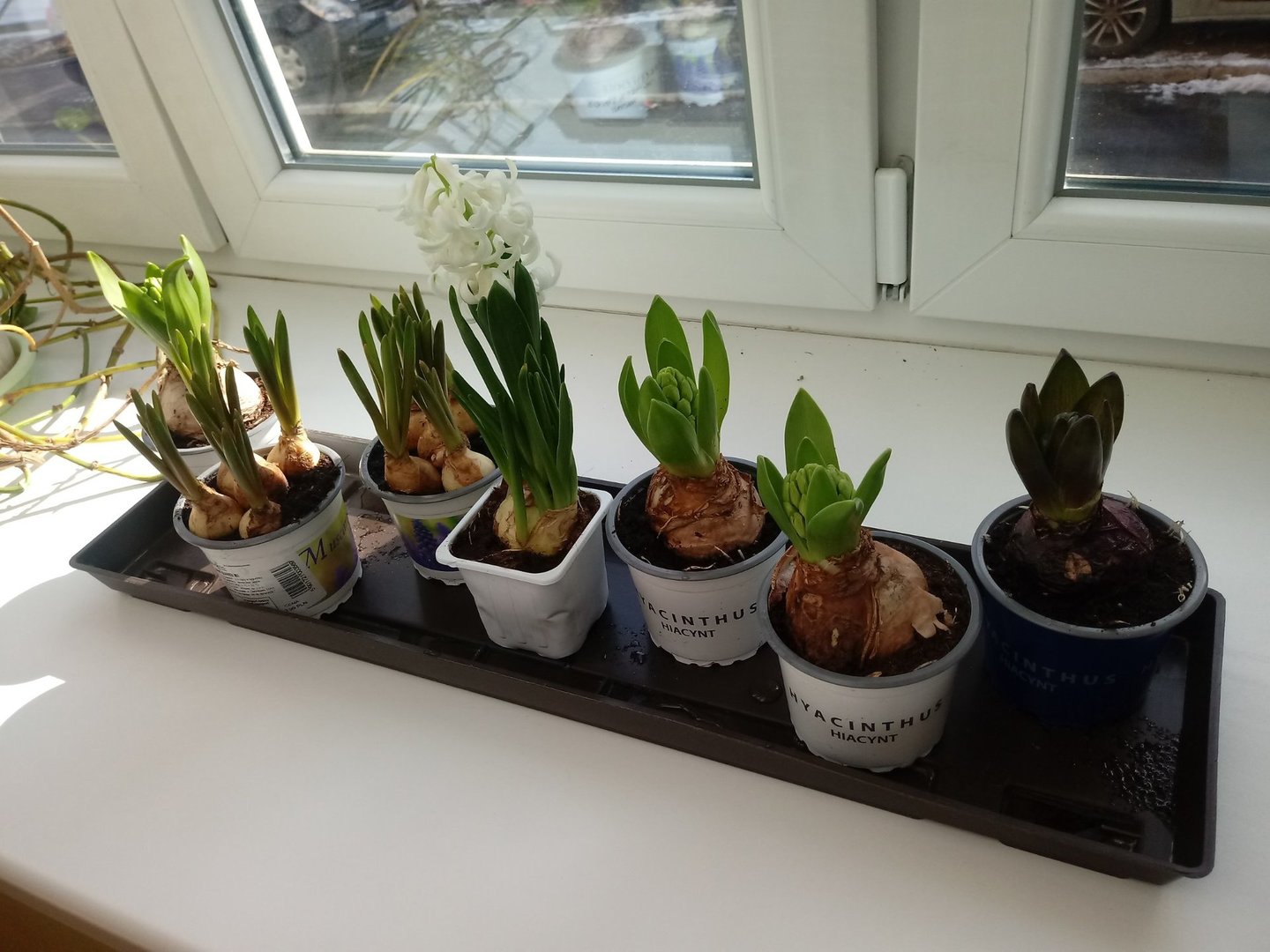 W ostatnim tygodniu nauki stacjonarnej uczniowie klasy 1a założyli ogródek kwiatowy na parapecie okna. Naszym celem było przywitanie wiosny w naszej klasie. Po tygodniu hiacynty i inne rośliny pięknie rozkwitły. Możemy je teraz podziwiać tylko na zdjęciach, szkoda, że nie na żywo.