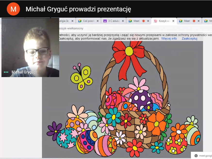 Przesyłamy świąteczne kartki wykonane na zajęciach online oraz pozdrowienia z ostatniej przed świętami lekcji.