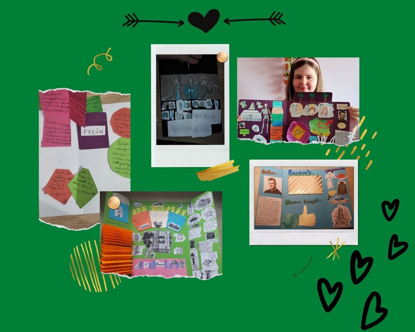 Uczniowie klasy 5a podsumowali pracę z lekturą „Felix, Net i Nika oraz Gang Niewidzialnych Ludzi” w bardzo ciekawy sposób. Ich zadaniem było przygotowanie lapbooków. Pomysłów było bardzo dużo! Można w nich znaleźć wszystko o lekturze: streszczenie, plan wydarzeń, wątki. Lapbook nawiązywał do lektury, jednak tworzony indywidualnie, wskazywał to, co dla każdego z uczniów było najważniejsze.