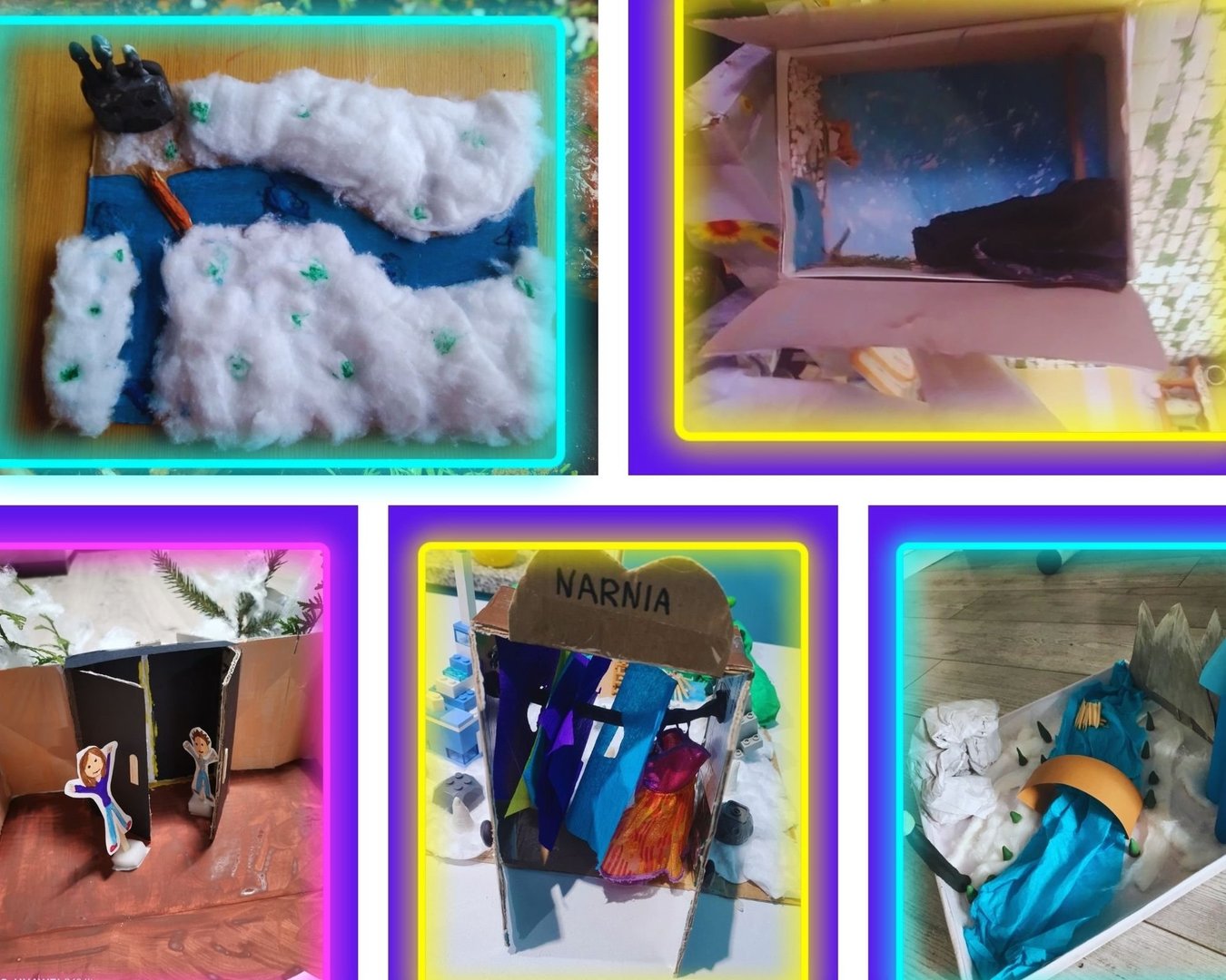 Uczniowie klasy 5b także podsumowali pracę z lekturą „Opowieści z Narnii”. Również bardzo dobrze się przygotowali: stworzyli cudowne, makiety, które oddają charakter całej powieści. Ich kreatywność możecie podziwiać na poniższych zdjęciach