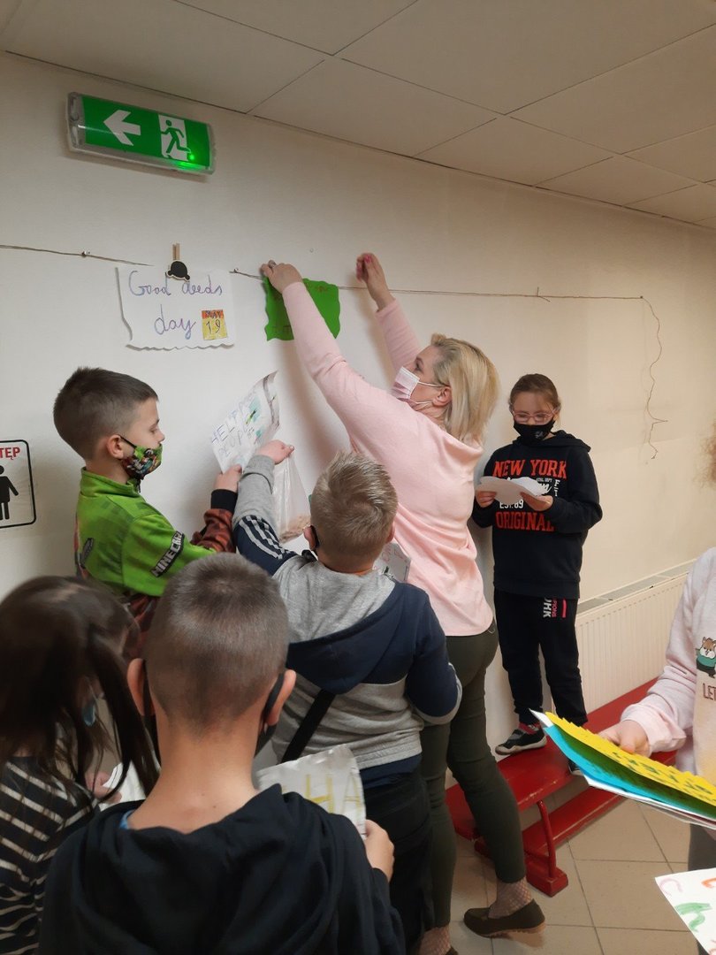 Uczniowie klas Trzecich podeszli do tematu po angielsku czyli metodycznie i z głęboką zadumą. Na lekcjach burza mózgów, czym jest dobry uczynek, jak zachęcić innych i to jeszcze w obcym języku! Reszta zadań poszła nam śpiewająco, wykonanie hasła związanego z tematem, opracowanie artystyczne i wykonanie ekspozycji. Jeszcze tylko pamiątkowe zdjęcie i jesteśmy gotowi do wprowadzania w życie wszystkiego o czym głoszą nasze hasła...po angielsku:)))