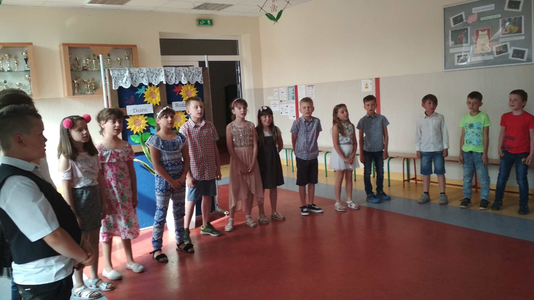 15 czerwca dzieci z klasy 2b zaprosiły swoich najbliższych, aby wspólnie świętować Dzień Rodziny. Były piosenki oraz wiersze o mamie, tacie i całej wspaniałej rodzinie. Nie zabrakło wesołej zabawy i rywalizacji dzieci kontra rodzice w konkursie rzutów do celu. Zwyciężyły oczywiście...dzieci! Dużo radości sprawiły wszystkim portrety mamy i taty narysowane przez dzieci. Rodzice musieli odnaleźć na nich siebie. Całość imprezy zwieńczył słodki poczęstunek.