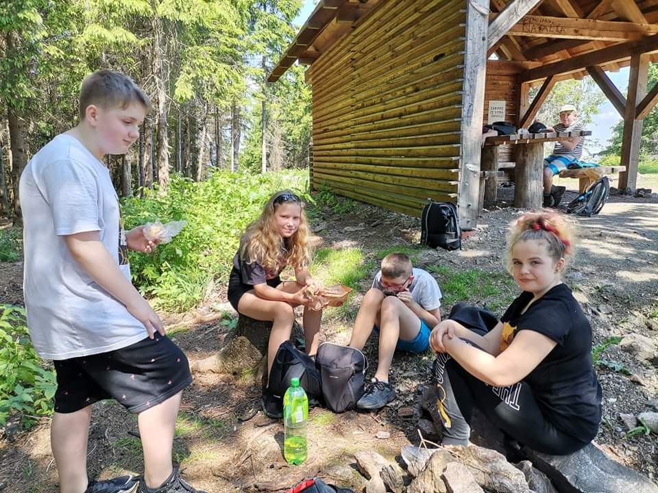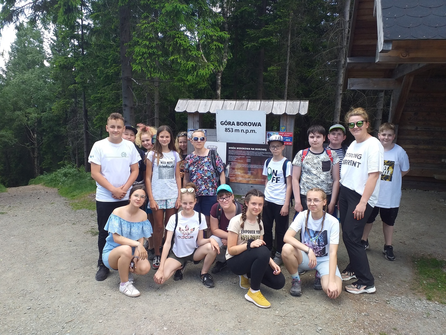 W piątek 18.06 klasy 7 c i 7 d uczestniczyły w wycieczce na Górę Borową. Jest to najwyższy szczyt gór wałbrzyskich z wieżą widokową, z której rozciągają się przepiękne widoki na panoramę Wałbrzycha i jego okolic. Mimo doskwierającego upału wejście na szczyt nie sprawiło większych problemów, a w nagrodę mogliśmy podziwiać niezłe widoki, w tym Śnieżkę. Korzystając z przepięknej pogody rozpaliliśmy ognisko, na którym nie mogło zabraknąć pieczenia kiełbasek. Zmęczeni, ale zadowoleni, że daliśmy radę wróciliśmy pod szkołę.