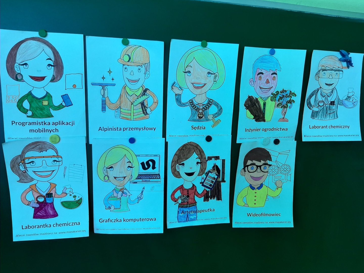 Gdzie pracuje i czym zajmuje się laborant chemiczny? Jakie atrybuty kojarzą się z inżynierem ogrodnictwa? Czym zajmuje się alpinista przemysłowy? O tych ciekawych zawodach rozmawialiśmy z uczniami klasy 3A podczas lekcji z doradztwa zawodowego. Na początku zajęć, uczniowie opowiadali o zawodach swoich rodziców. Potem zapoznali się z przedstawicielami nietypowych zawodów w postaci kolorowanek, którym należało dodać odpowiednie atrybuty zawodowe. Efekty pracy można podziwiać na zdjęciach. Dzieci również interesowało , kim jest taki doradca zawodowy i czym się zajmuje;)