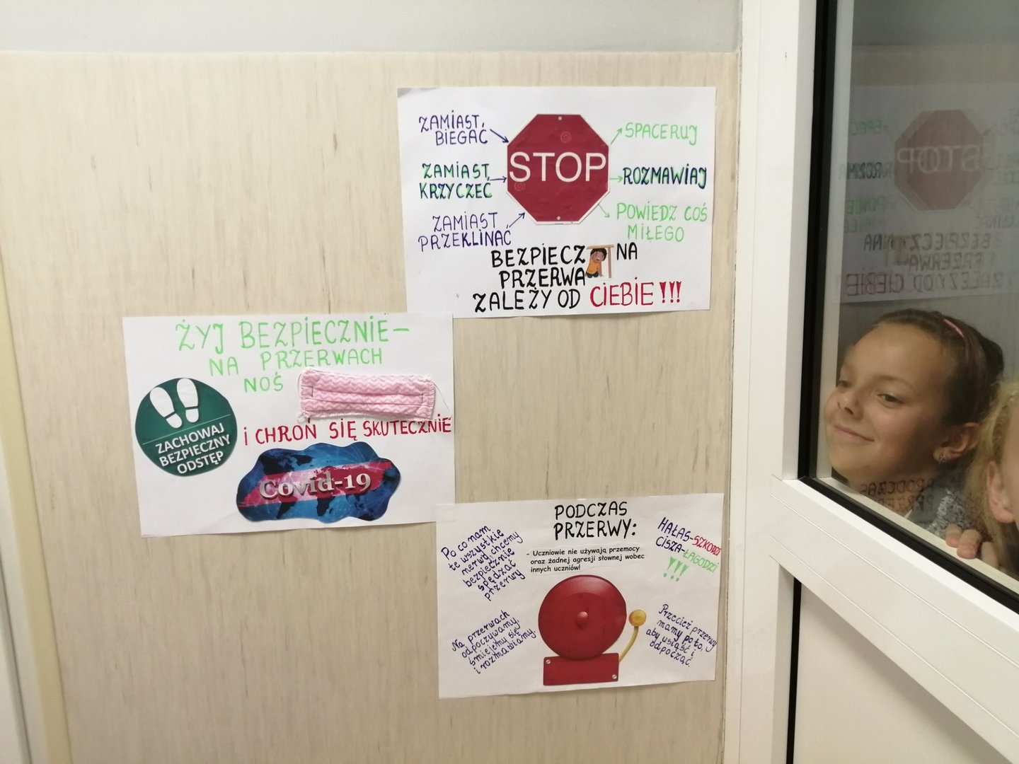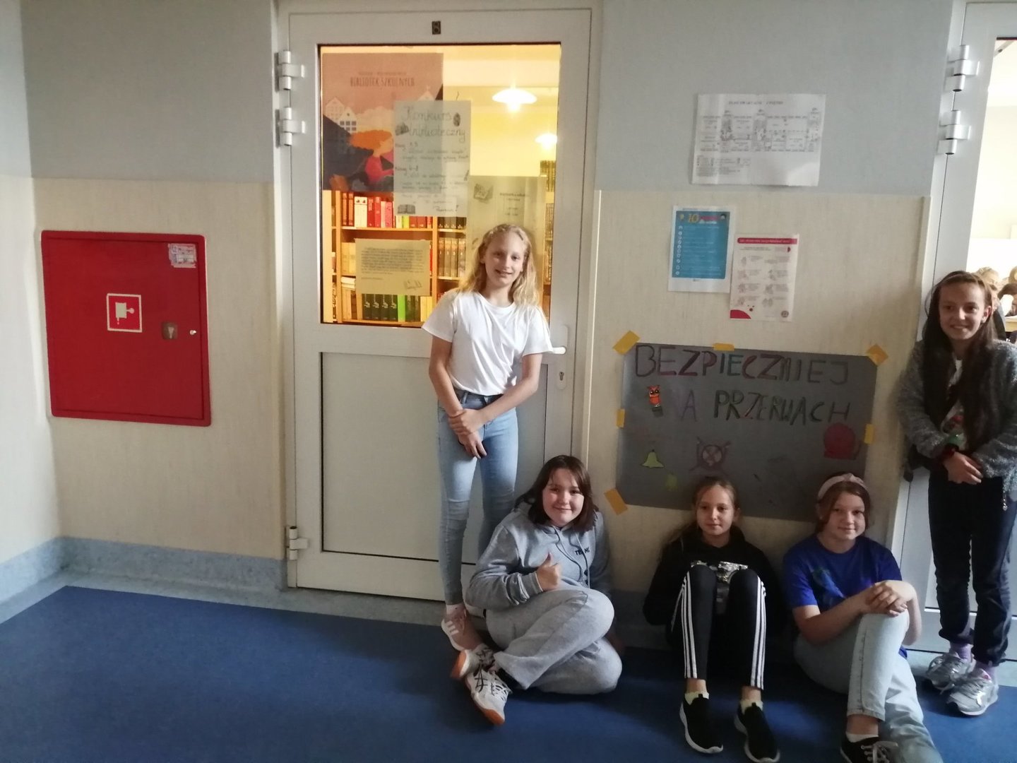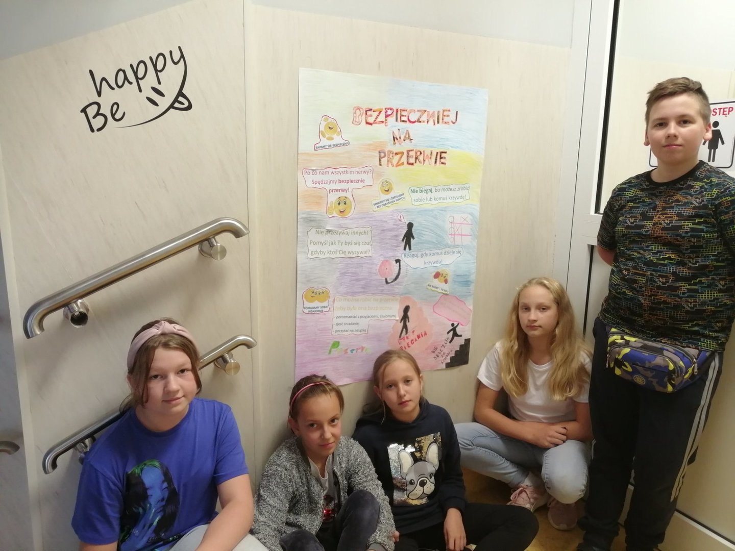 Troszcząc się o bezpieczeństwo uczniów w szkole cała społeczność uczniowska wzięła udział w akcji ogłoszonej przez Samorząd Uczniowski „Bezpieczniej na przerwie”, której celem było podniesienie bezpieczeństwa uczniów podczas przerw. Każda klasa opracowała i wykonała plakaty ze zbiorami reguł, które powinny być przestrzegane przez wszystkich, aby czas spędzony na przerwie należał do czasu spokojnego odpoczynku między kolejnymi lekcjami. Plakaty zostały umieszczone na korytarzach szkolnych, żeby każdy mógł się z nimi zapoznać i utrwalić sobie zasady, których powinien przestrzegać każdego dnia.