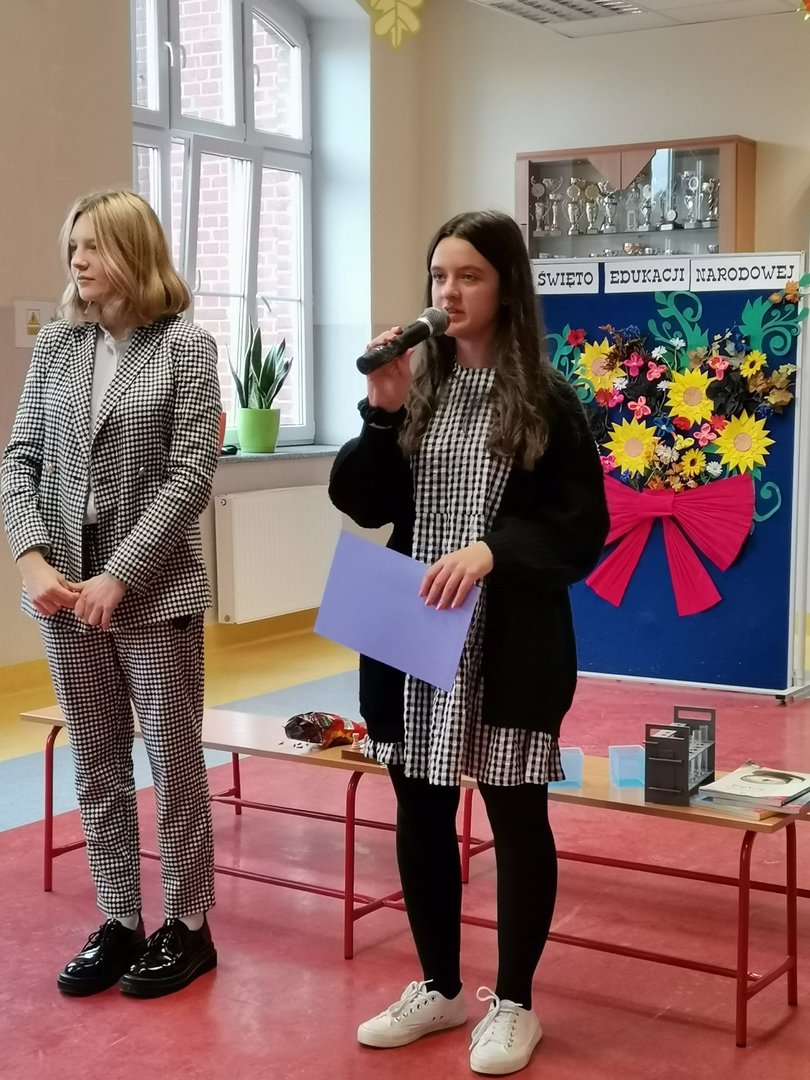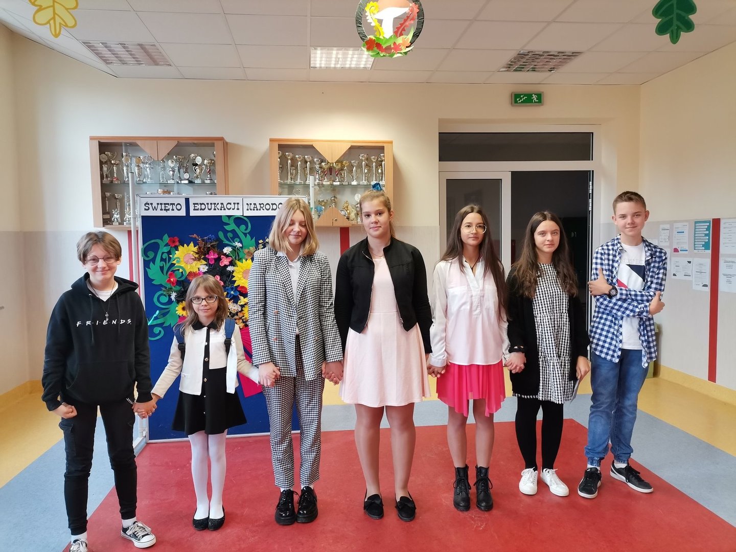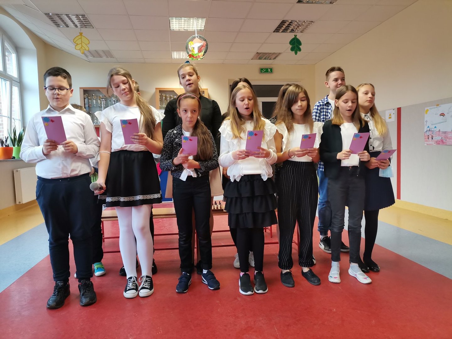 14 października obchodziliśmy Dzień Edukacji Narodowej. Z tej okazji odbył się uroczysty apel. Uczniowie w szczególny sposób podziękowali pracownikom szkoły za cierpliwość, serdeczność i wyrozumiałość. Również pani dyrektor Renata Gibes złożyła wyrazy wdzięczności nauczycielom i pracownikom obsługi. Zaznaczyła, że wszyscy w swojej pracy kierują się przede wszystkim sercem, co jest niezwykle ważne. Jak co roku wręczyła Nagrody Dyrektora Szkoły, będące uznaniem za zaangażowanie. Przygotowano również krótki program artystyczny, w którym z przymrużeniem oka pokazano szkolną rzeczywistość. Na zakończenie uczniowie złożyli serdeczne życzenia oraz obdarowali pedagogów i pozostałych pracowników kartkami przygotowanymi przez Samorząd Uczniowski.