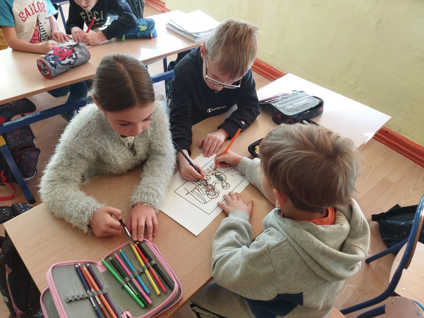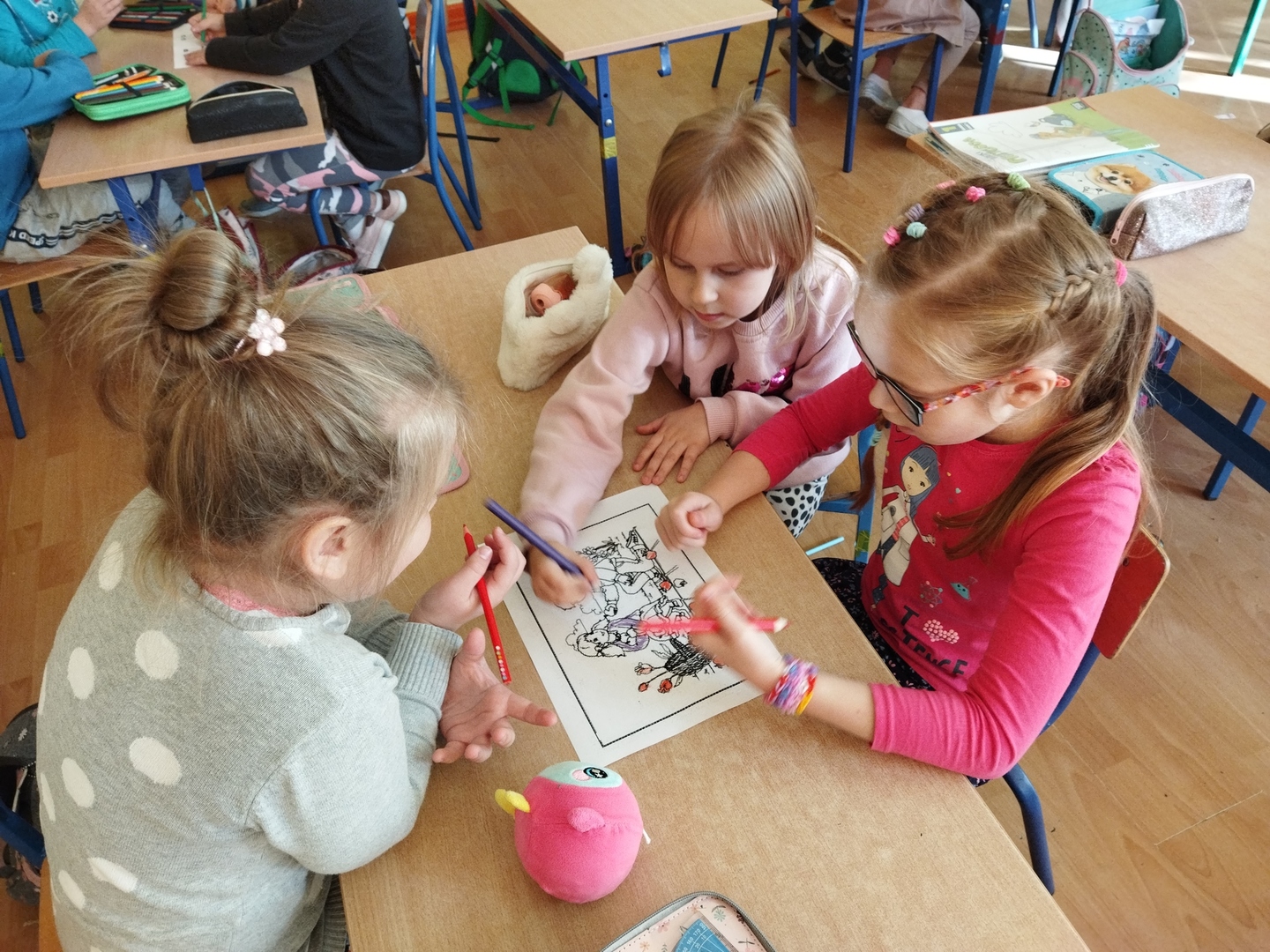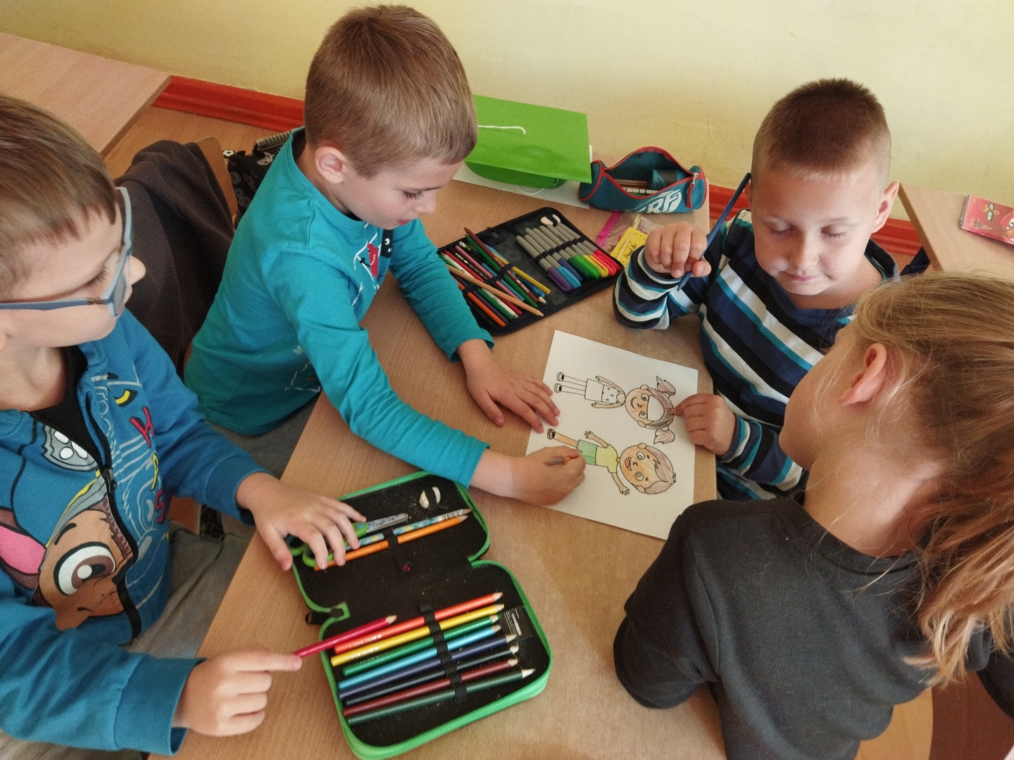 Dnia 25 października 2021 r. uczniowie klasy pierwszej a uczestniczyli w lekcji wychowawczej dotyczącej kultury osobistej w życiu codziennym. Dzieci zostały zapoznane z zasadami dobrego wychowania. Wprowadzeniem do tematu lekcji był film ”Zasady dobrego wychowania Kubusia”. Uczniowie odgrywali krótkie scenki dramowe. Dopasowywali” kulturalne słowa „ do wykonanych ilustracji w grupach. Na koniec zajęć powstała klasowa gazetka pt. „Klasa 1 a w życiu codziennym wysoką kulturą osobistą kieruje się”.