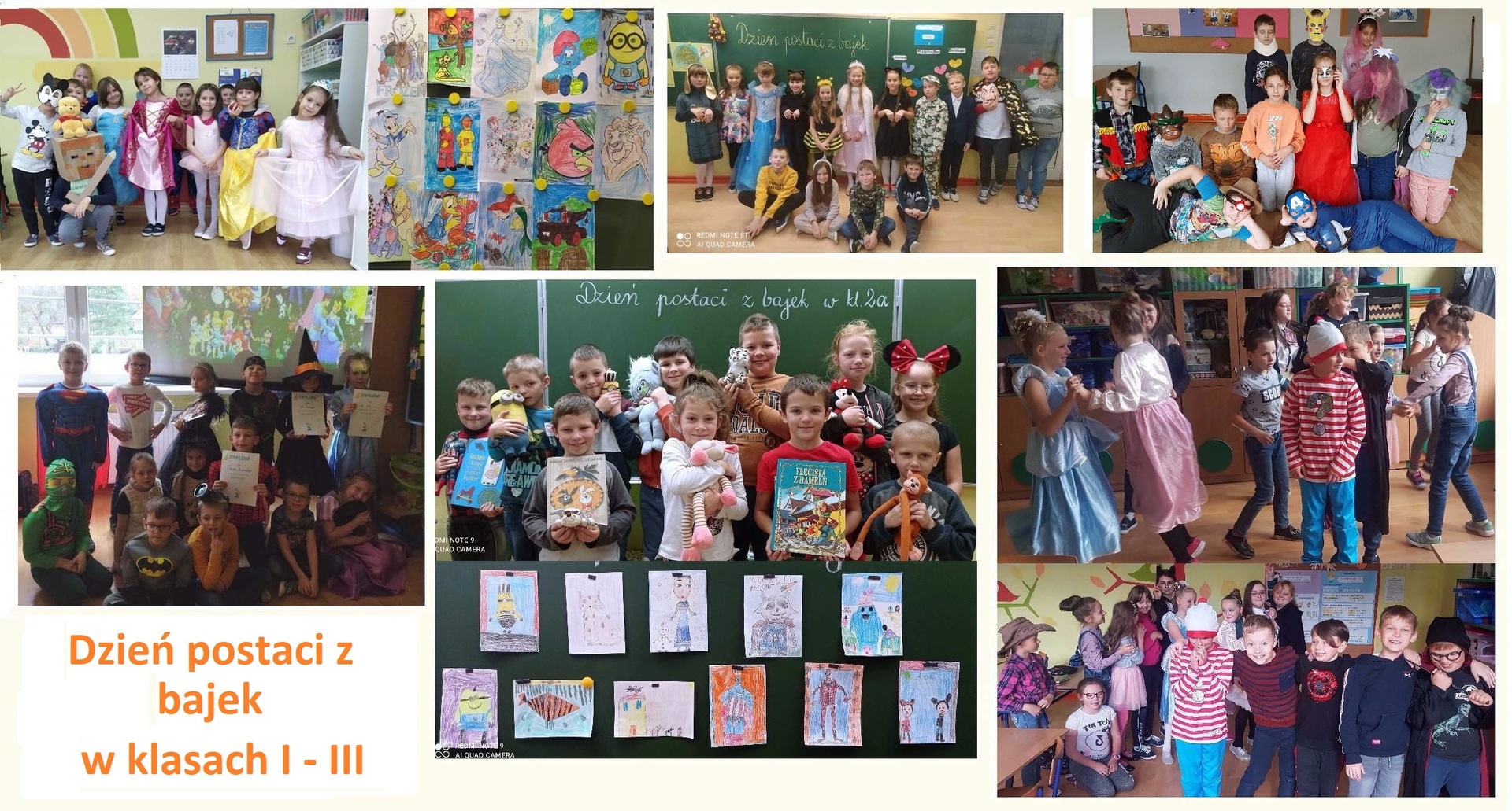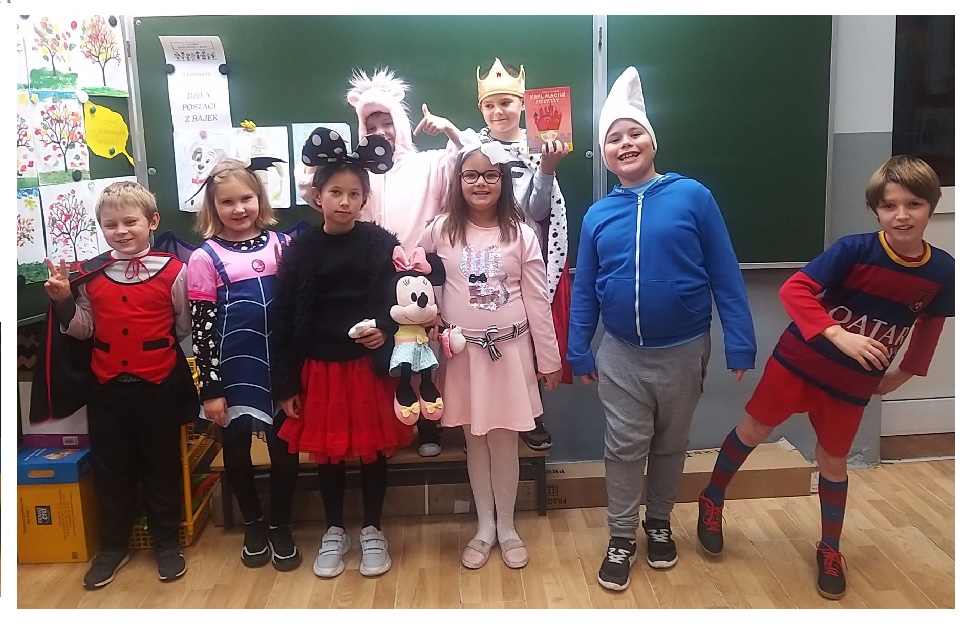 W dniu 5 listopada dzieci z klas 1-3 obchodziły Dzień Postaci z Bajek. Ten dzień był bardzo wesoły. Uczniowie przebrali się za ulubione postaci, prezentowały swoje stroje, odgadywały, kto kim jest, a później dzieci kolorowały obrazki z ulubionymi postaciami z bajek. Nie obyło się także bez zabaw, tańców wspólnych zdjęć.