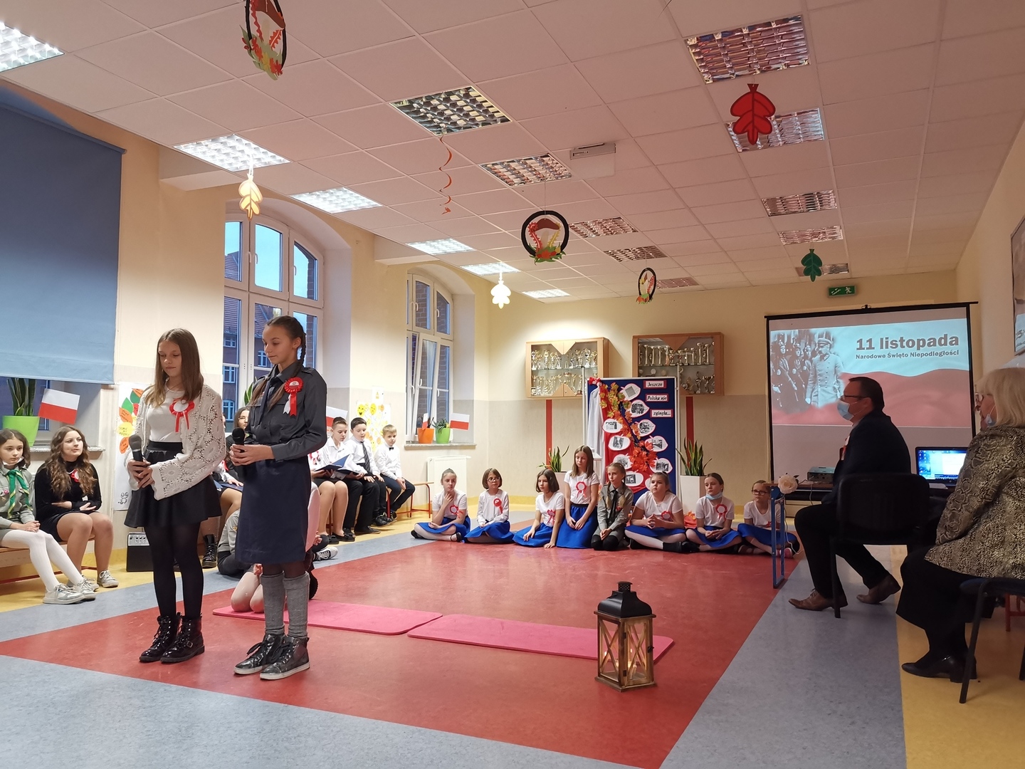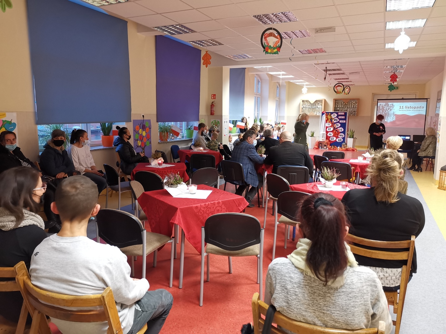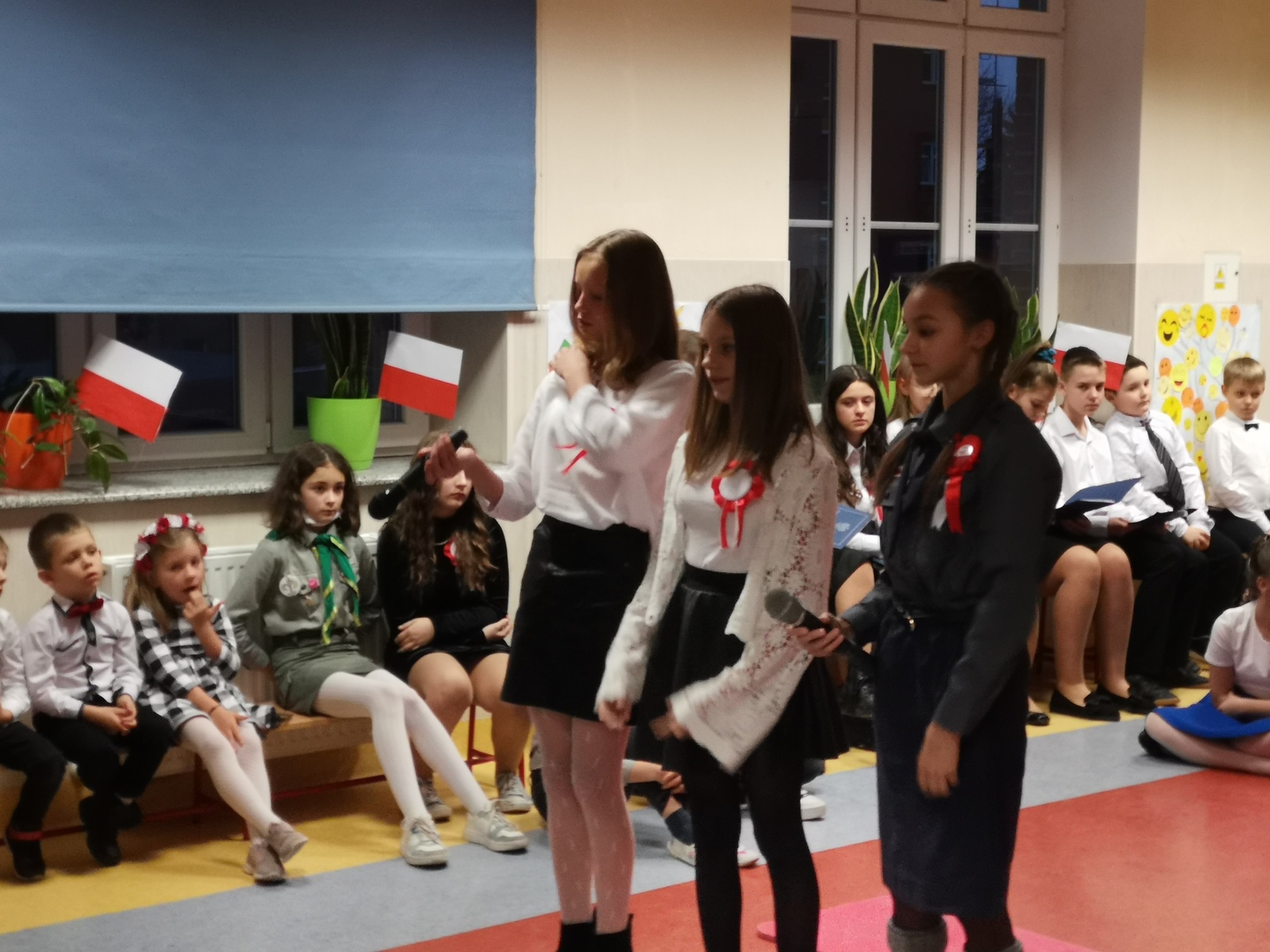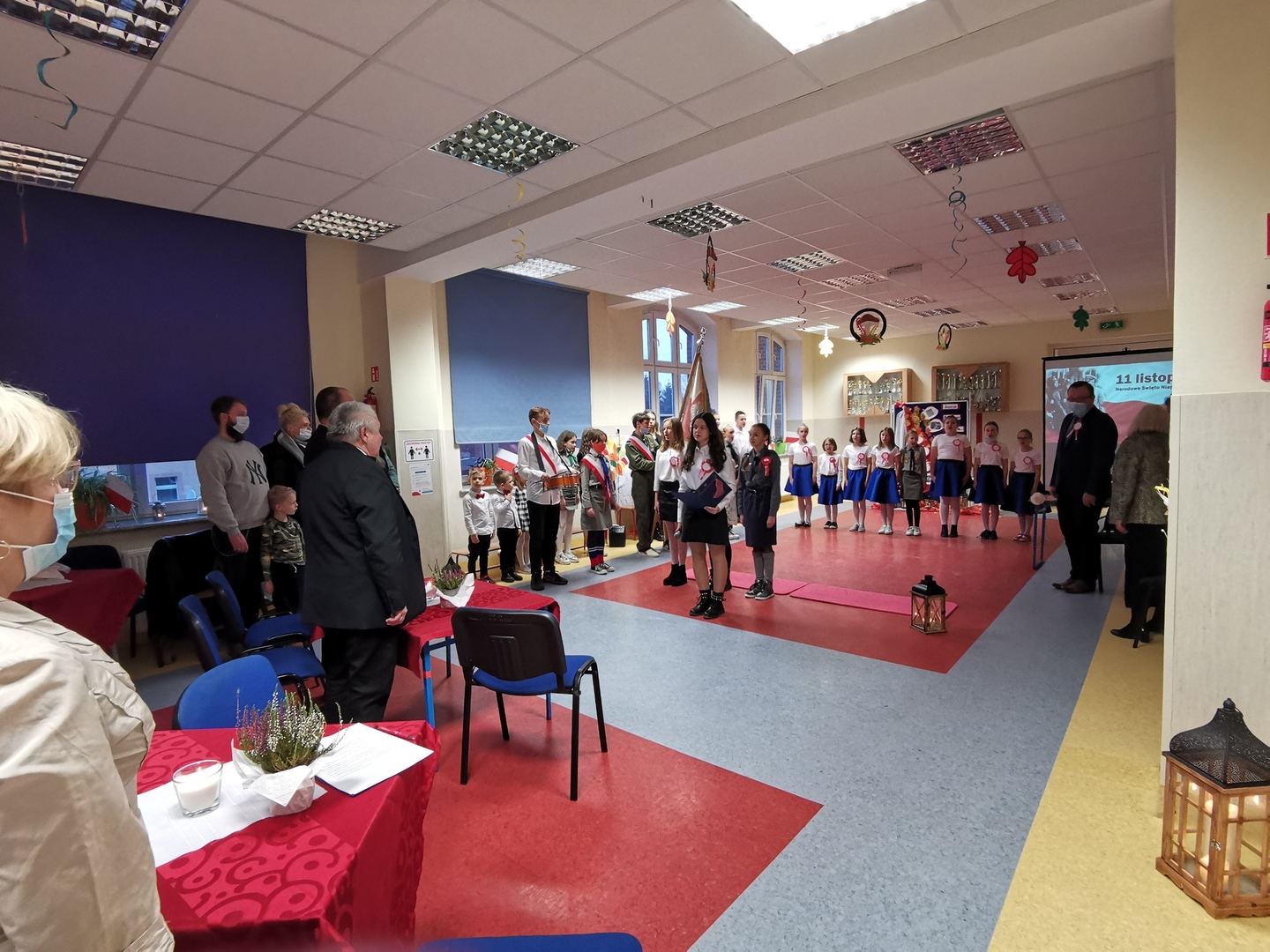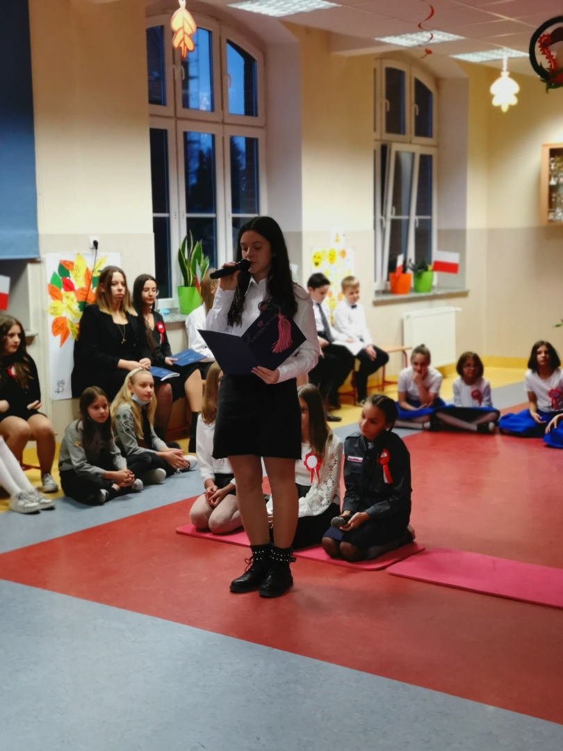 Uczniowie naszej szkoły zaprezentowali przybyłym gościom wzruszający i wartościowy montaż słowno-muzyczny, na który złożyły się: część artystyczna z prelekcją historyczną, wspólne śpiewanie pieśni patriotycznych oraz recytacje wierszy.