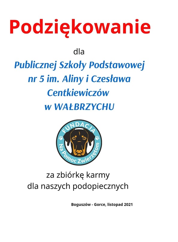 Zakończyła się zbiórka karmy dla fundacji Na Pomoc Zwierzętom z Boguszowa – Gorc. Serdecznie dziękujemy wszystkim Darczyńcom.