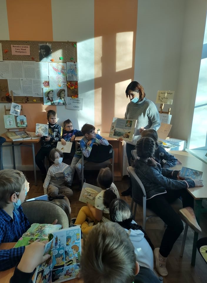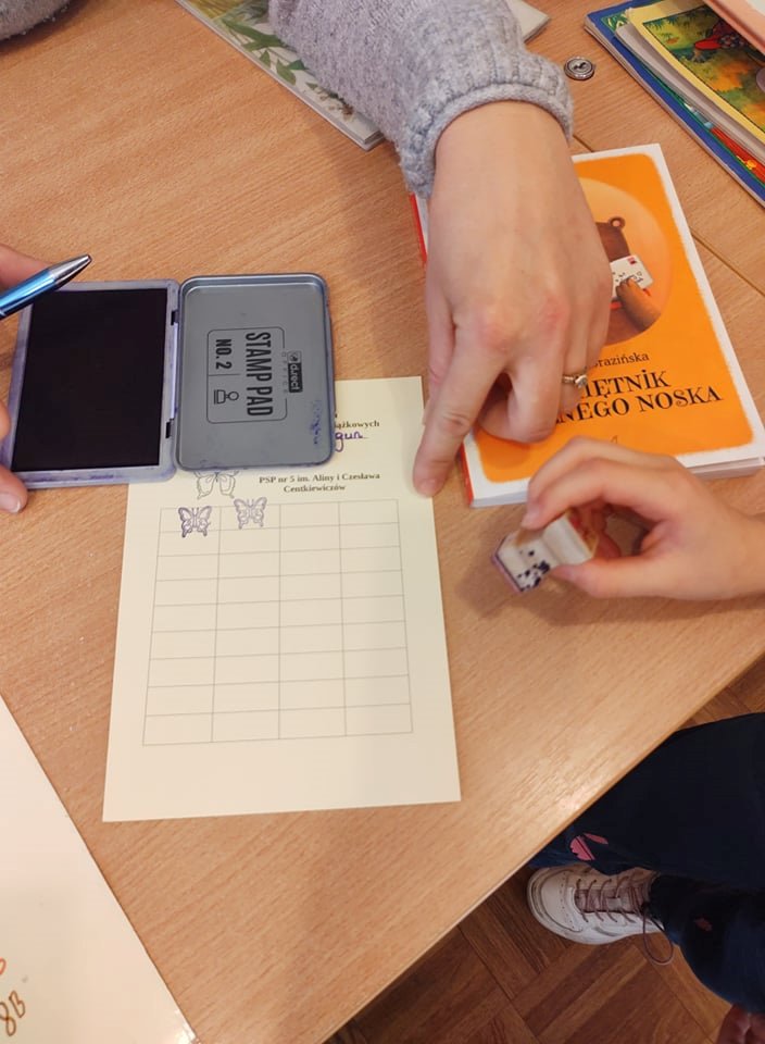 W naszej Bibliotece od listopada działa Klub Motyli Książkowych dla klas 1-3. Podczas zajęć dzieci słuchają opowiadań dotyczących ekologii, następnie zaciekawione zadają pytania i rozmawiają na ten temat z Panią Bibliotekarką. Otrzymały również Legitymację Klubu i przy okazji zajęć otrzymują pieczątkę Motylka.