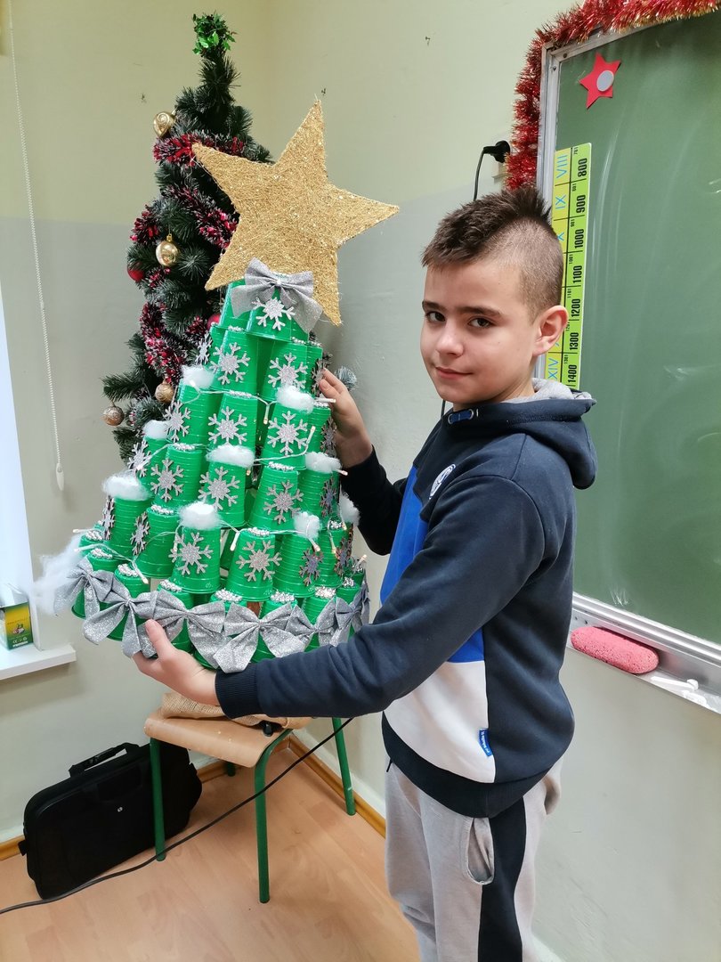 Do konkursu zgłoszono 116 choinek przestrzennych z 8 Szkół z terenu miasta Wałbrzycha. Nasz uczeń Jakub Nowicki z klasy 5b zajął I miejsce. Gratulujemy!!!