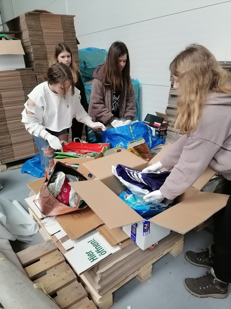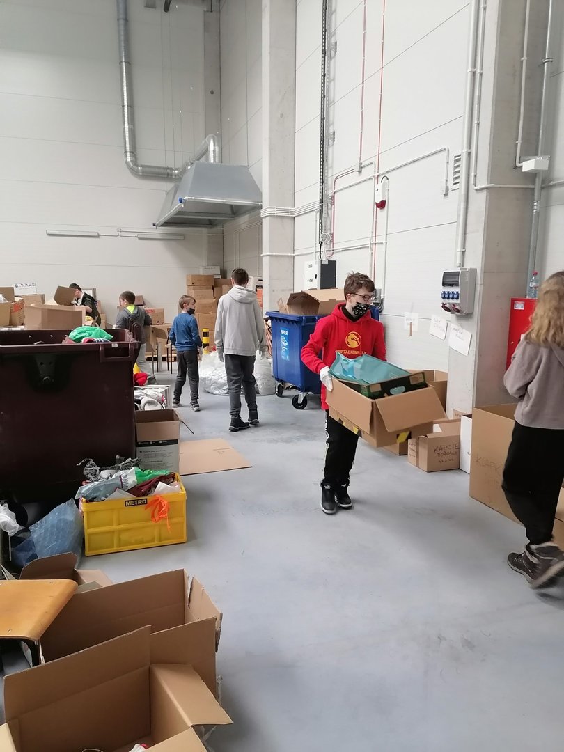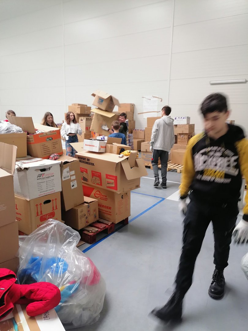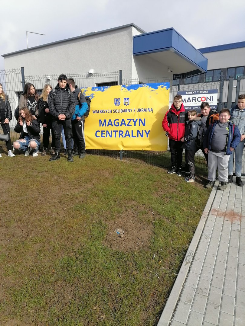 Dnia 8.03 uczniowie klasy 7a w ramach wolontariatu udali się do magazynu w celu pomocy przy pakowaniu darów dla Ukrainy.