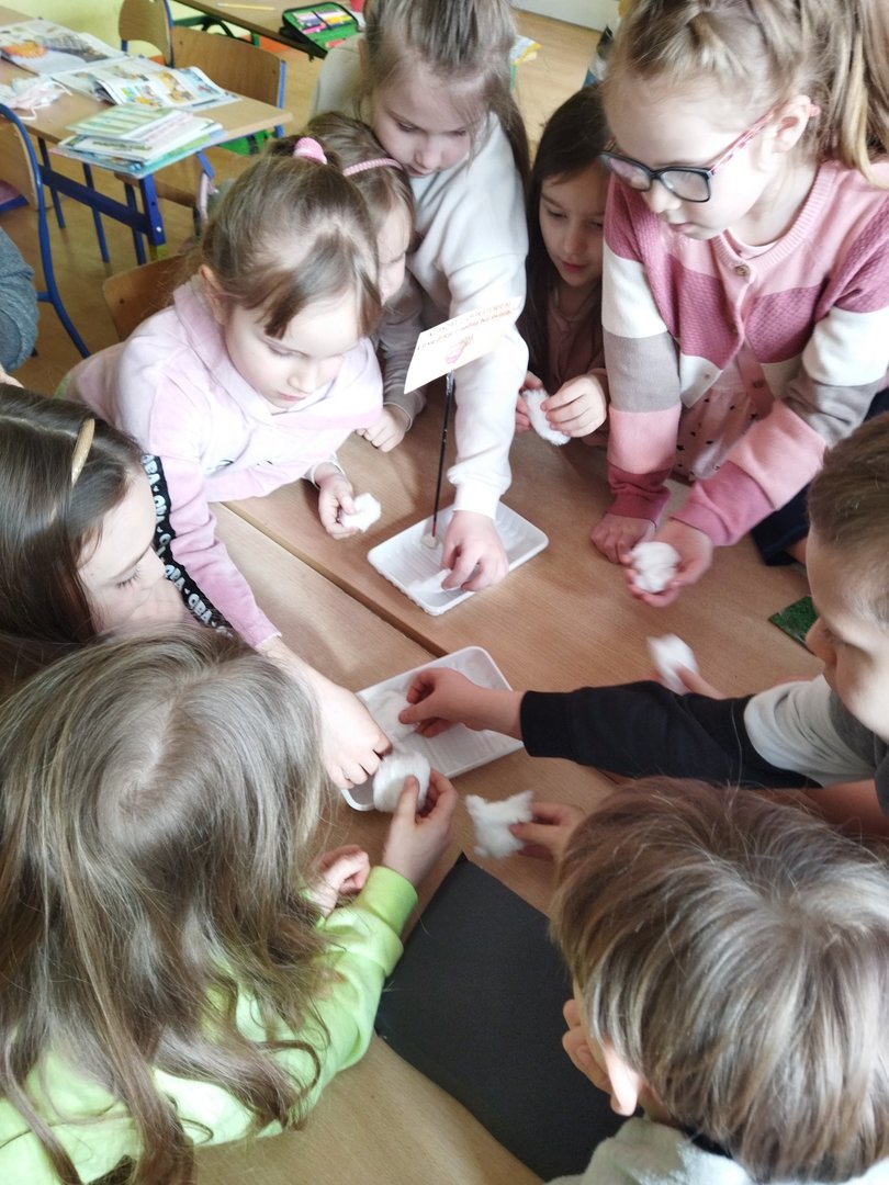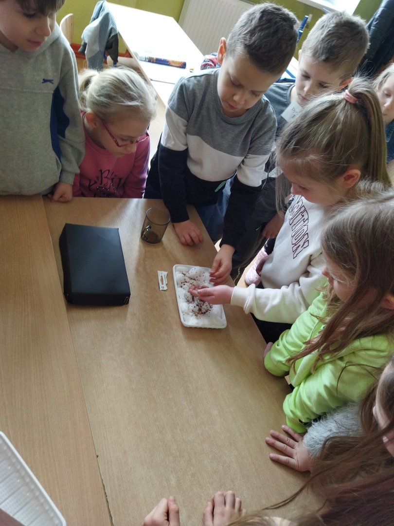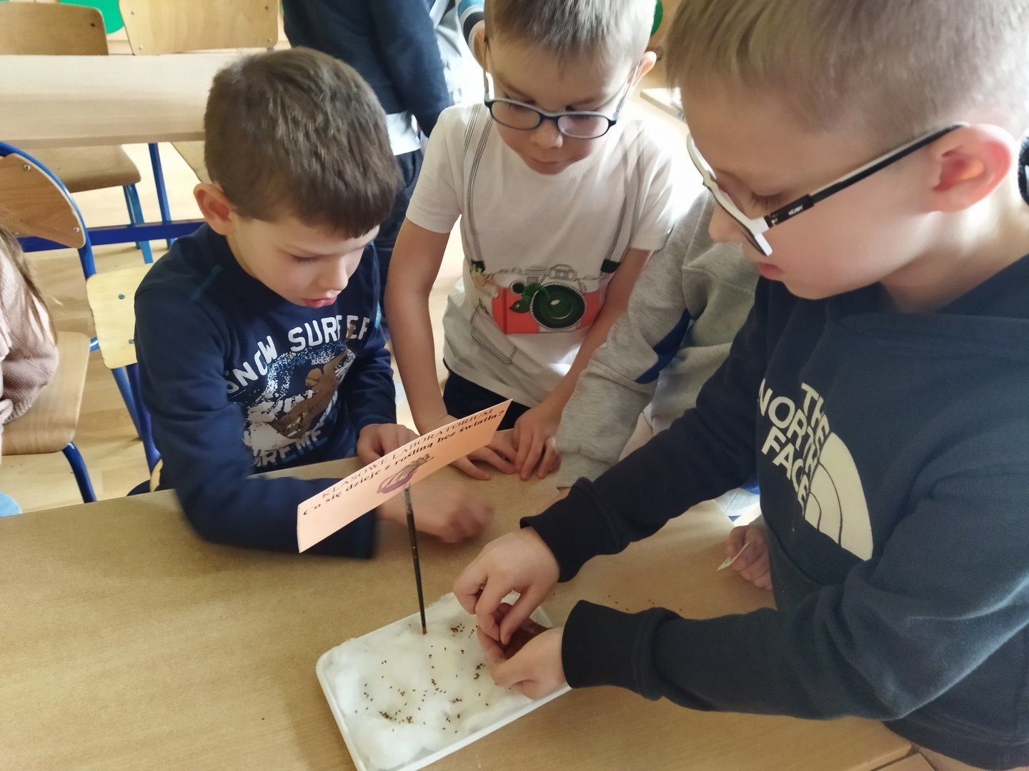 Uczniowie klasy pierwszej a, aby udzielić odpowiedzi na pytanie wykonali doświadczenie. Na dwóch talerzykach ułożyli warstwę waty, podlali ją wodą i rozsypali nasiona rzeżuchy. Jeden talerzyk szczelnie przykryli czarnym pudełkiem. Oba talerzyki postawili na parapecie okiennym. Przez kilka dni dyżurni będą podlewali rośliny. Po tygodniu obserwacji uczniowie wyciągną wnioski z doświadczenia.
