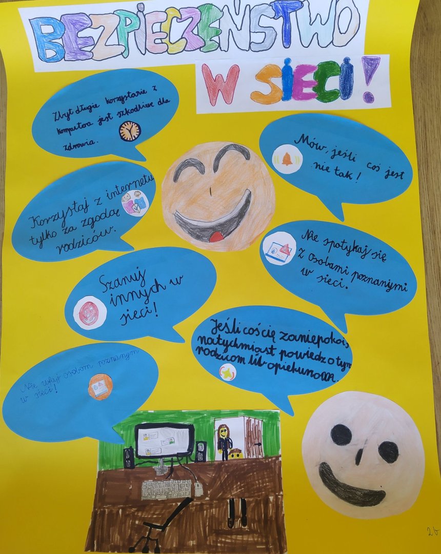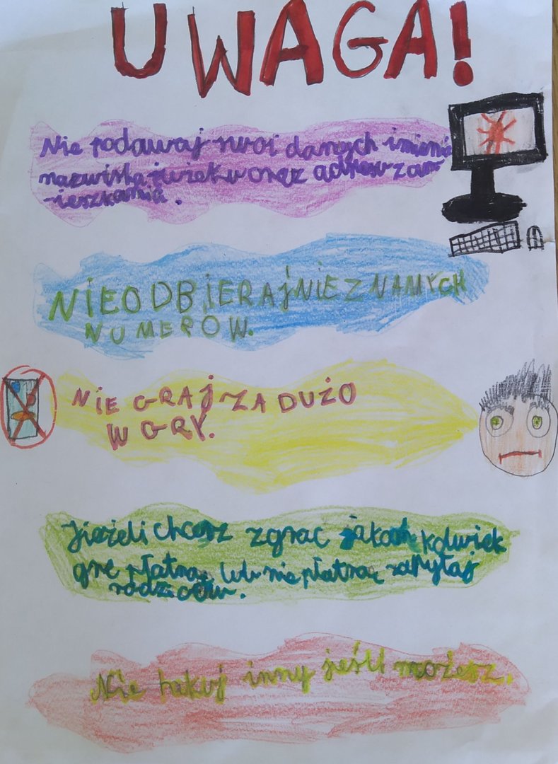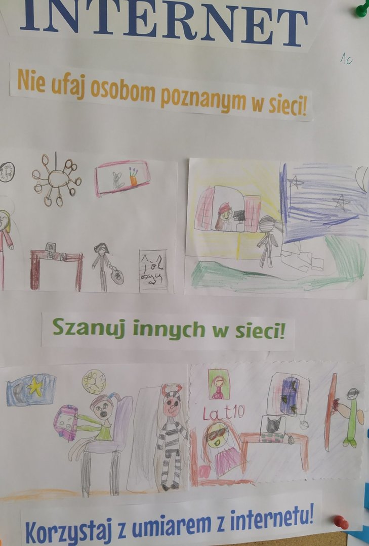 Uczniowie klas 1-3 uczestniczyli w zajęciach dotyczących bezpieczeństwa w Internecie. Omawialiśmy zasady bezpieczeństwa w Internecie, zwłaszcza te: