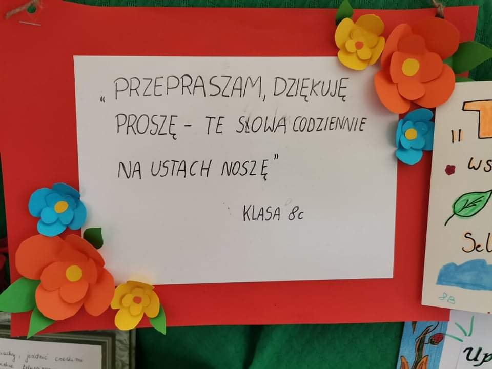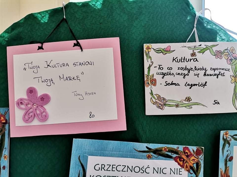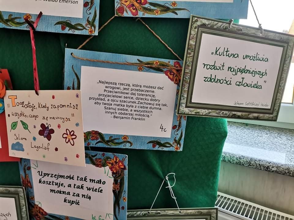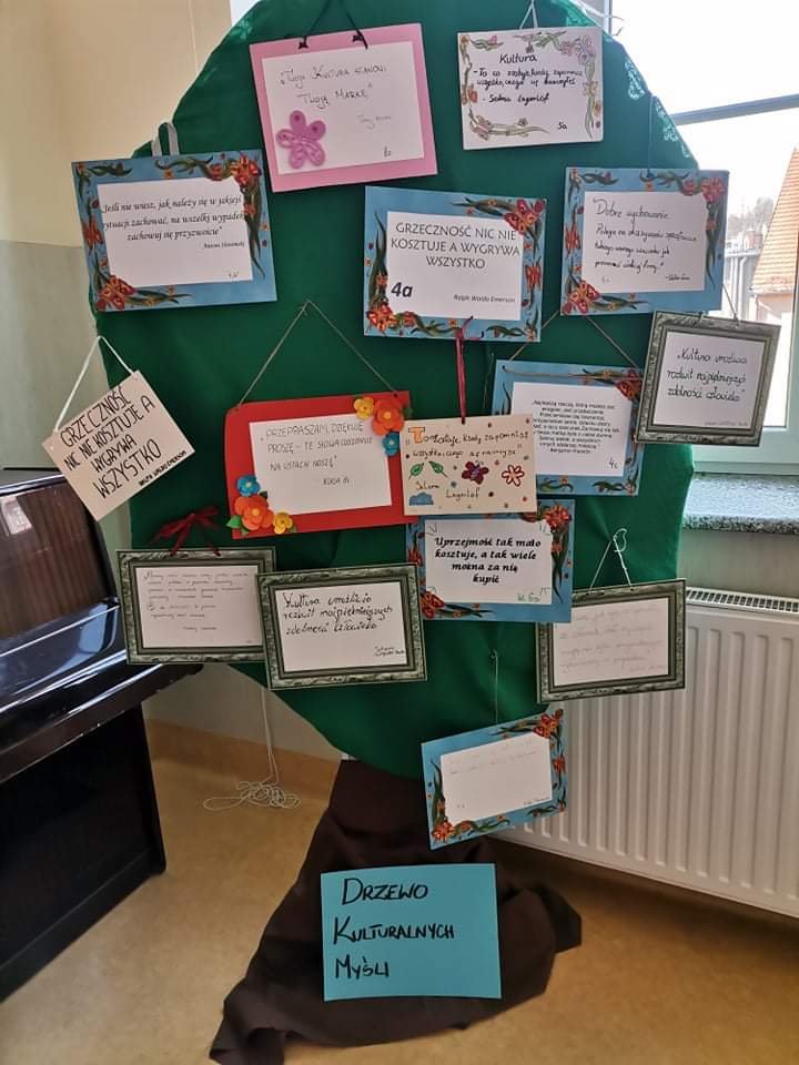 Zieloną koronę przyozdobiły pięknie wykonane przez poszczególne klasy sentencje o kulturze. Niektóre z nich dobrze wszystkim znane, choć były wśród nich też te rzadziej słyszane, np.: „Kultura umożliwia rozkwit najpiękniejszych zdolności człowieka”.