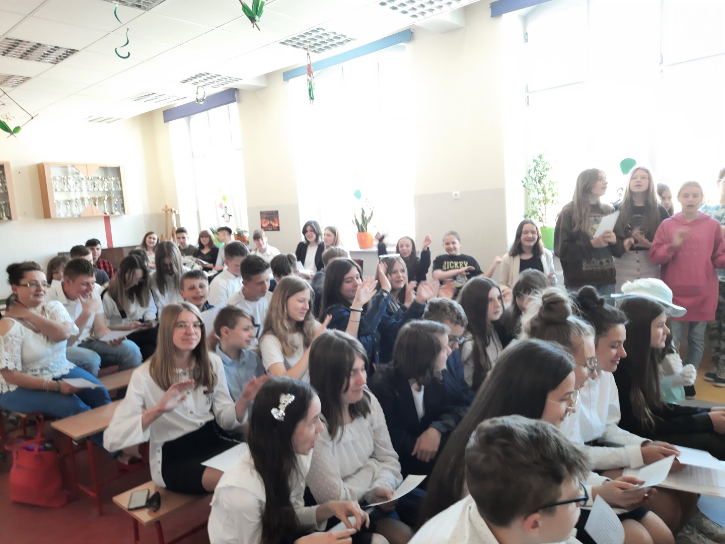 Uczniowie klasy 3a wzięli udział w części artystycznej przygotowanej dla naszych gości w czasie XVII Konkursu Wiedzy o Wielkiej Brytanii. Brawurowo wykonali piosenkę "Good day, sunshine". Zachęceni występem goście śpiewali razem z nami.