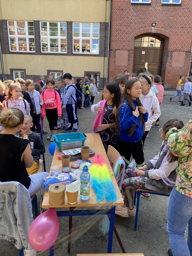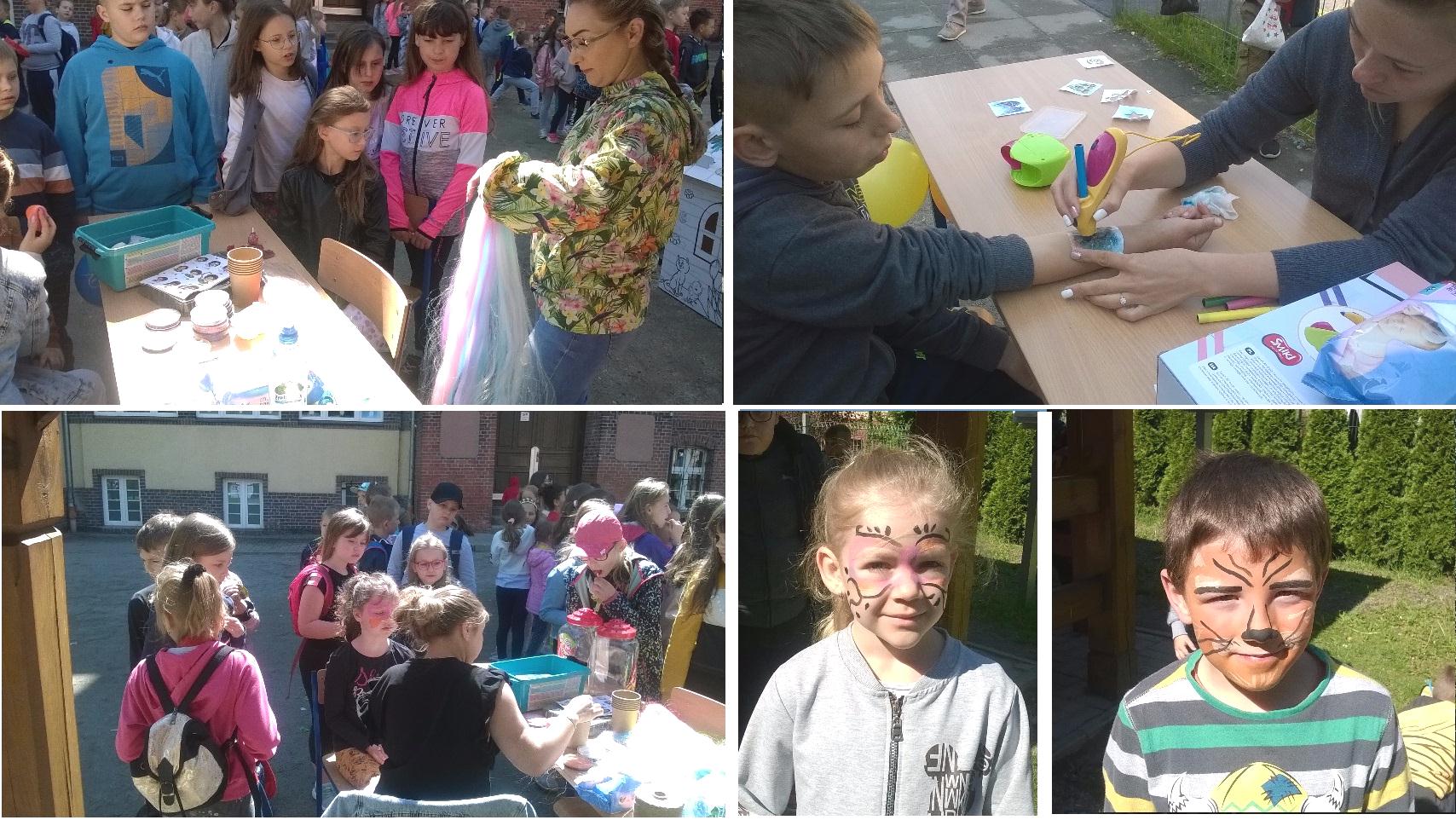Z okazji Dnia Dziecka w naszej szkole przygotowano festyn. MOPS zorganizowało takie atrakcje jak: ozdobienie twarzy za pomocą przeznaczonych do tego farbek, dziewczynkom pani wplatała we włosy kolorowe warkoczyki, można było sobie zrobić na ręku tatuaż. Dodatkowo była możliwość zbudowanie konstrukcji z łączonych rurek oraz malowanie tekturowego domku. Dział Profilatyki Miejskiego Ośrodka Pomocy Społecznej przygotował dla dzieci nagrody za udziałw konkursach. Straż Miejska wprowadzała naszych milusińskich w świat ruchu drogowego realizując założenia programu edukacji komunikacyjnej „Autochodzik”. Rada Rodziców przygotowała dla dzieci popcorn i przeróżne słodkości, a pan Wiesław Bielawski z RWS Podgórze i radny - pan Piotr Kwiatkowski częstowali dzieci lizakami.