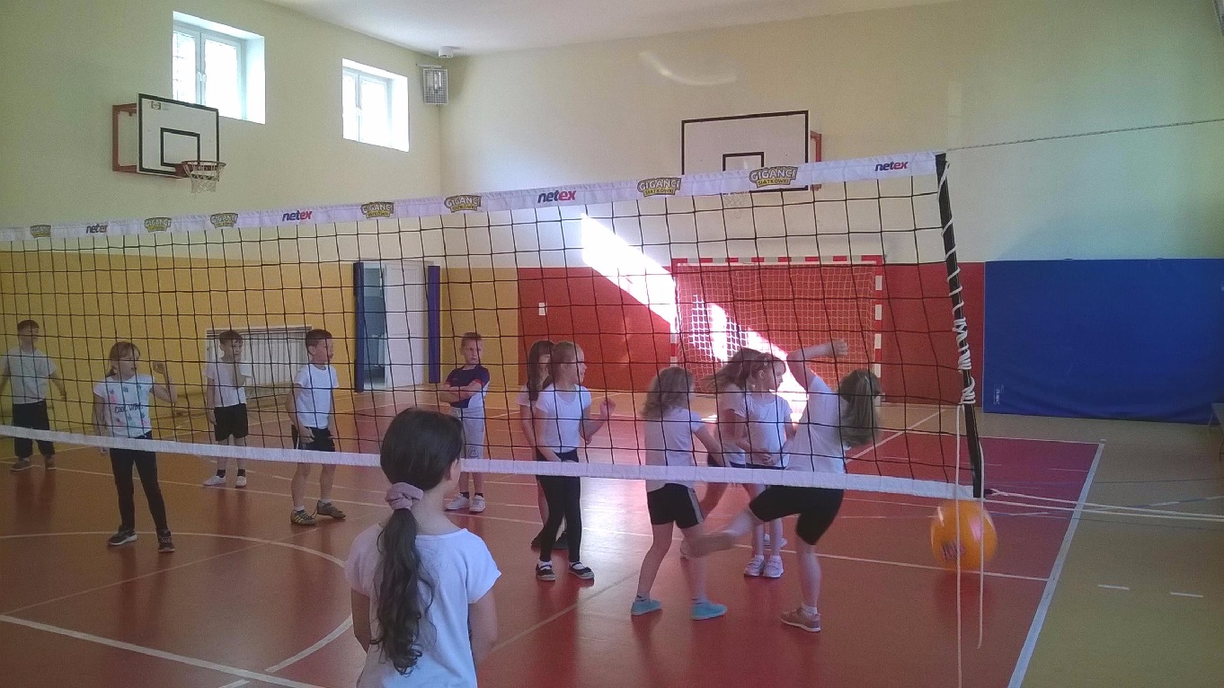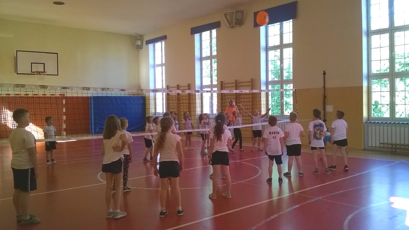 Nieuchronnie zbliża się koniec roku, a potem wyjazdy nad jezioro, rzekę czy nad morze. Biorąc ten fakt pod uwagę, w klasach 1a i 1b zorganizowano pierwsze spotkanie z piłką plażową. Na początku dzieci radziły sobie dość nieporadnie, ale w miarę gry – odbicia były coraz bardziej celne i przemyślane. Obie drużyny zostały pochwalone za ofiarną grę i zostały zapewnione, że to nie był pierwszy i ostatni przedsmak lata z „plażówką”.