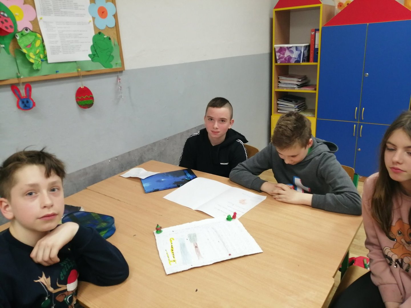 W II semestrze uczniowie klas 5a, 6a, b i 7b zmierzyli się z lekturami w innowacyjny sposób – przygotowali gry planszowe na motywach książek:Andrzeja Maleszki Czerwone krzesło, J.J. Tolkiena Hobbit, czyli tam i z powrotem, Henryka Sienkiewicza W pustyni i w puszczy i Aleksandra Fredry Zemsta.