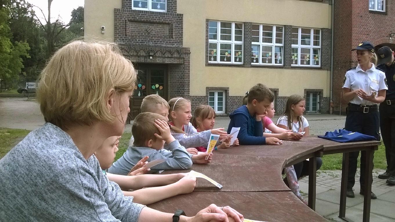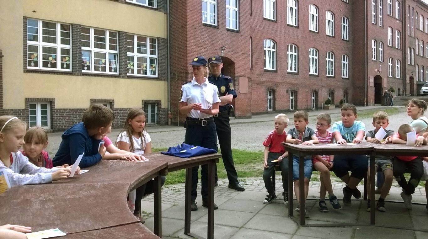 W poniedziałek klasy pierwsze odwiedziła Straż Miejska z prelekcją na temat bezpiecznych form spędzenia wakacji. Wspólnie omówiliśmy różne aspekty zagrożeń, a więc jak zachować się nad wodą, w górach, jak być bezpiecznym w domu i jak chronić się przed burzą. Los chciał, że akurat w pobliżu Podgórza przetaczały się błyskawice i grzmoty. Całe szczęście, że ominęły nas w czasie prelekcji, lecz potem nad dzielnicą rozszalała się prawdziwa burza. Dzieciaki czując się bezpiecznie w szkole, z zaciekawieniem obserwowały ją przez szyby okien.
