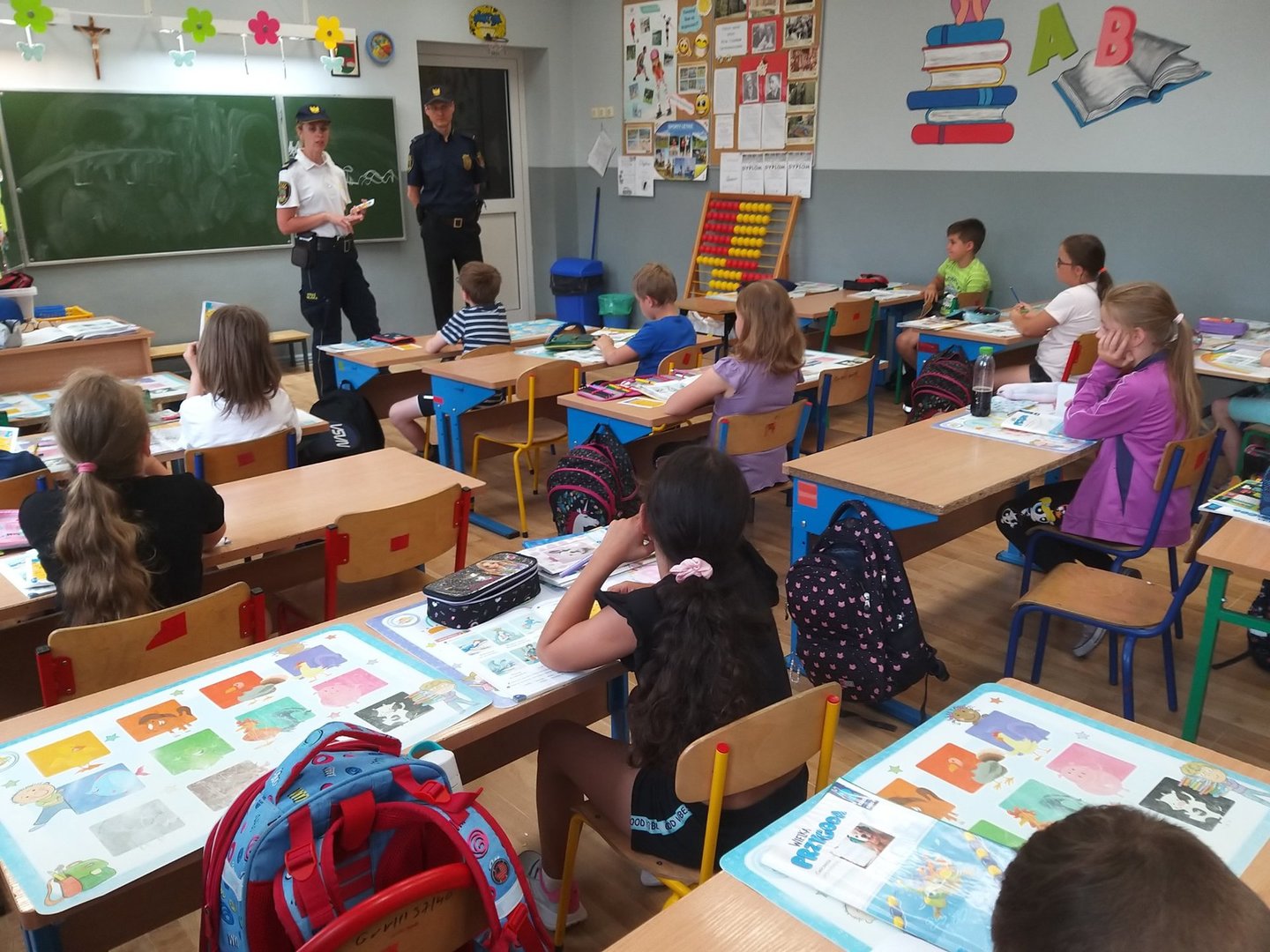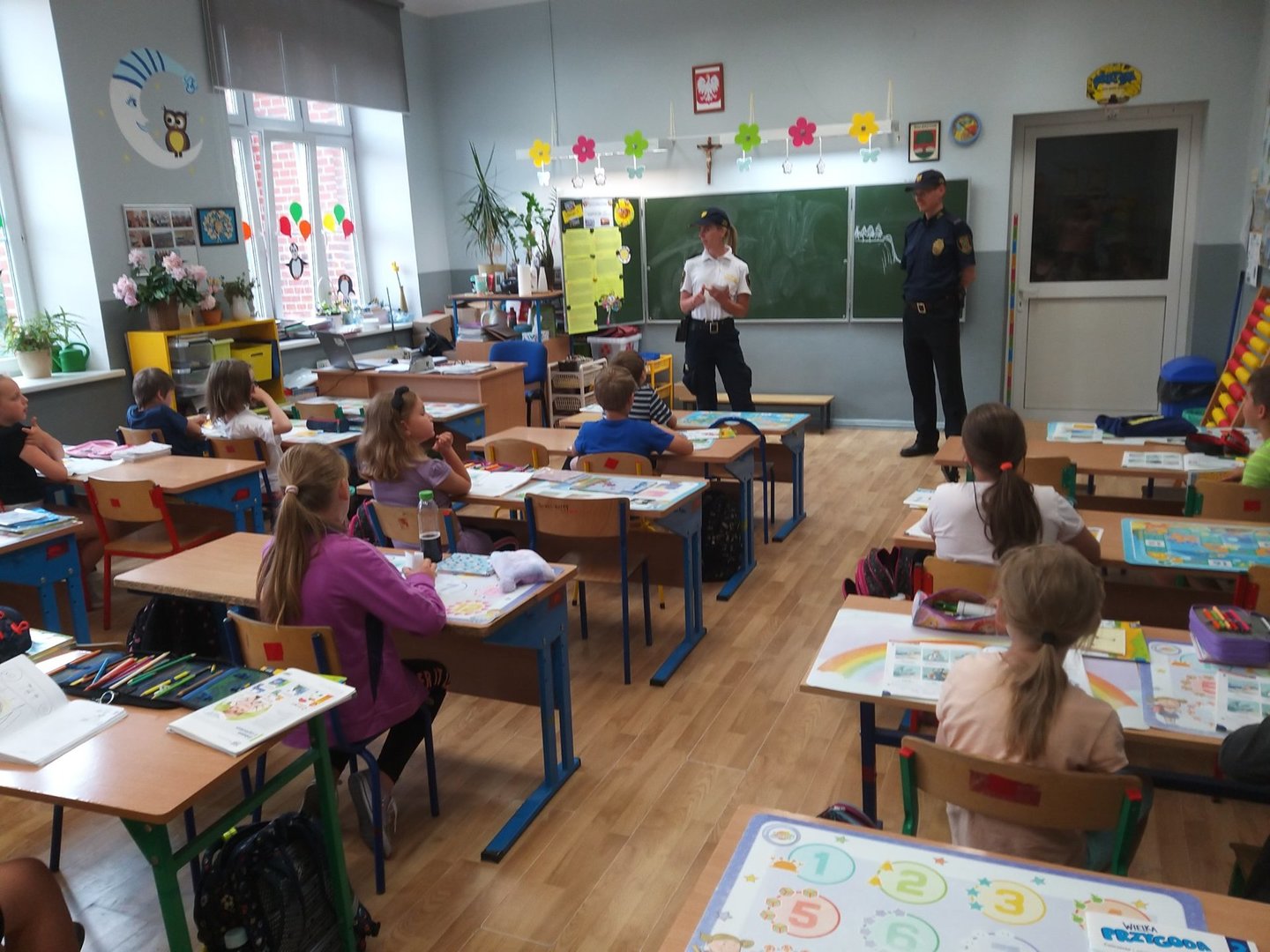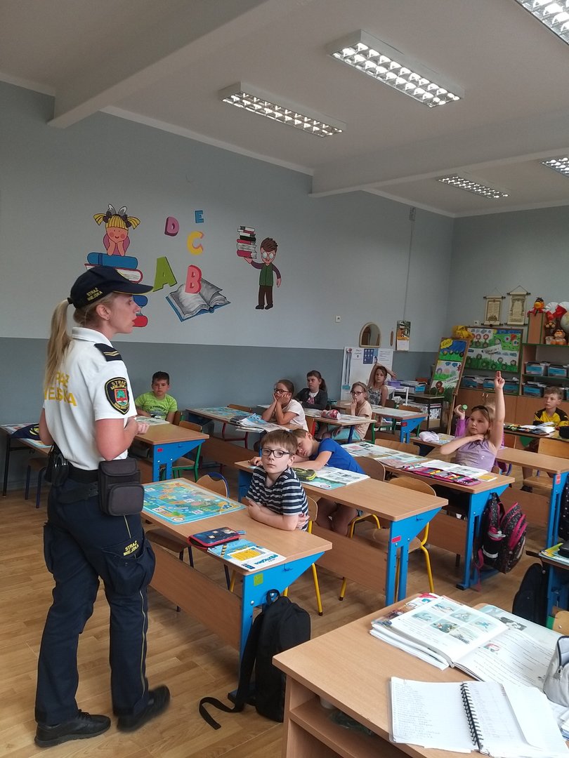 20 czerwca klasy drugie odwiedzili strażnicy miejscy, aby przypomnieć dzieciom o bezpiecznym spędzaniu wakacji. Drugaki z uwagą słuchały prelekcji Pani strażnik. Dostały też ulotki "Bezpieczne wakacje".