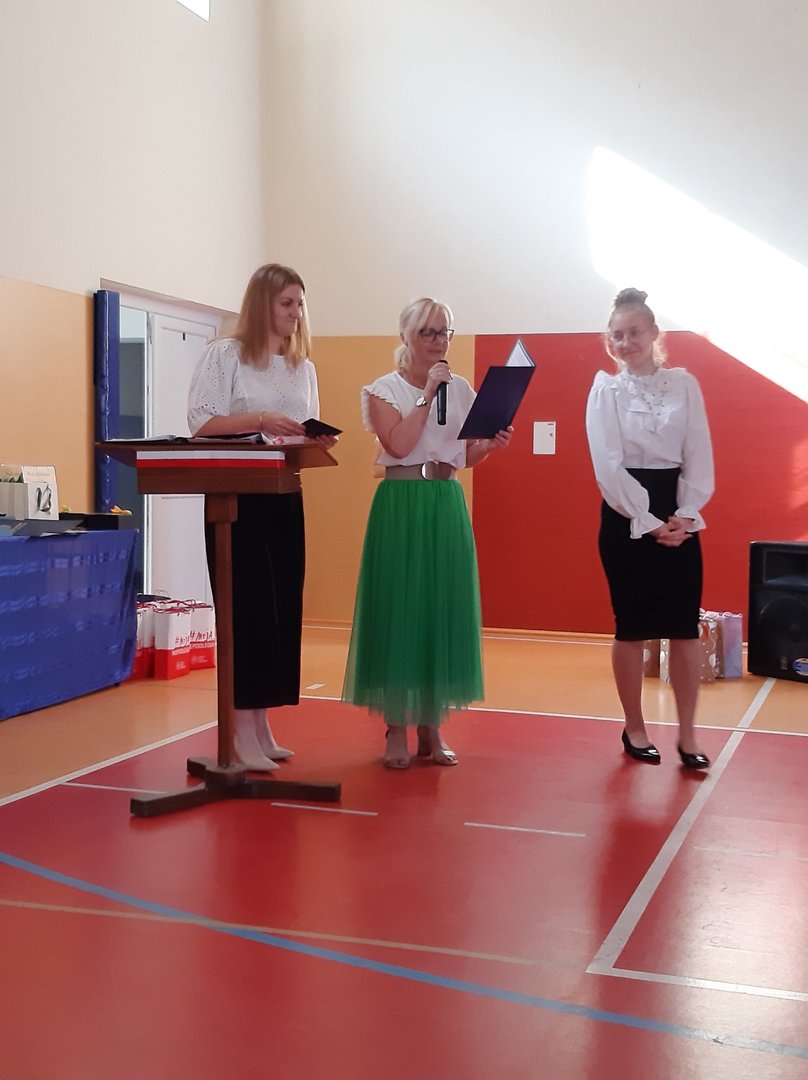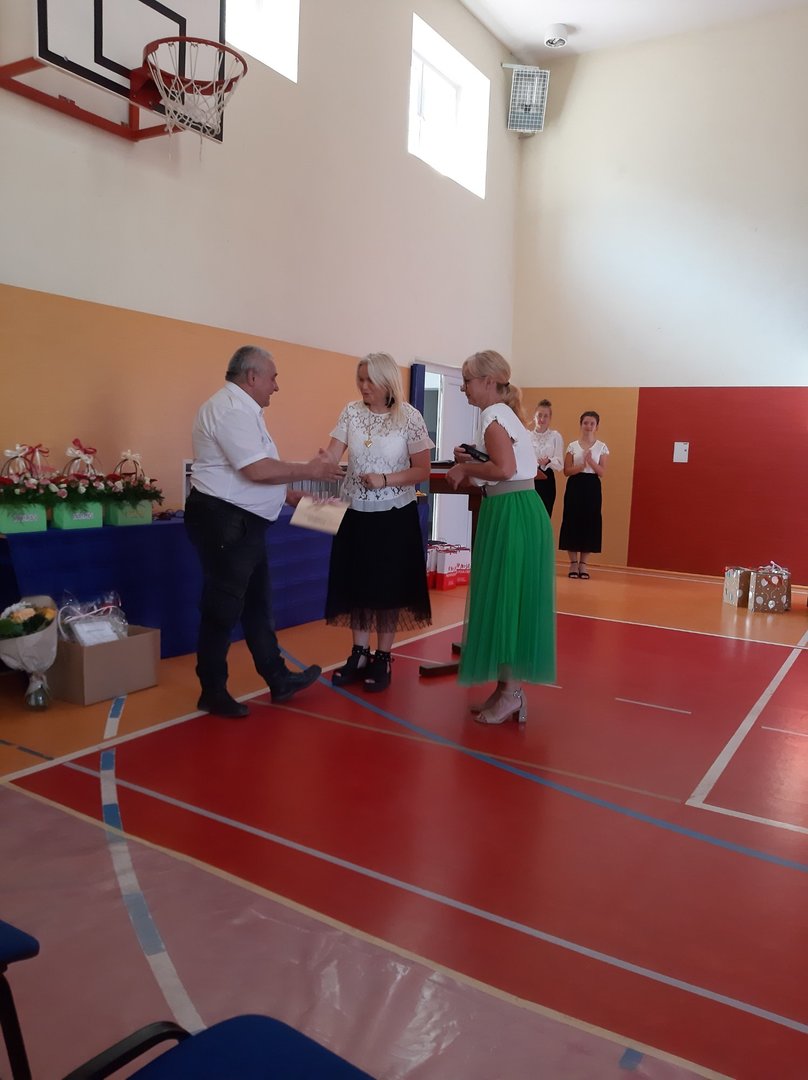 Piątek był również dniem, w którym "do widzenia" powiedziano odchodzącym na emeryturę pracownikom - Pani Małgorzacie Rykowskiej (nauczyciel muzyki, pedagog, była dyrektor PSP nr 5), Pani Beacie Kociubskiej (nauczyciel 1-3) i pani Ewie Piniaś (nauczyciel geografii). I tu nie obyło się bez nostalgicznych wspomnień, pachnących bukietów kwiatów, upominków.