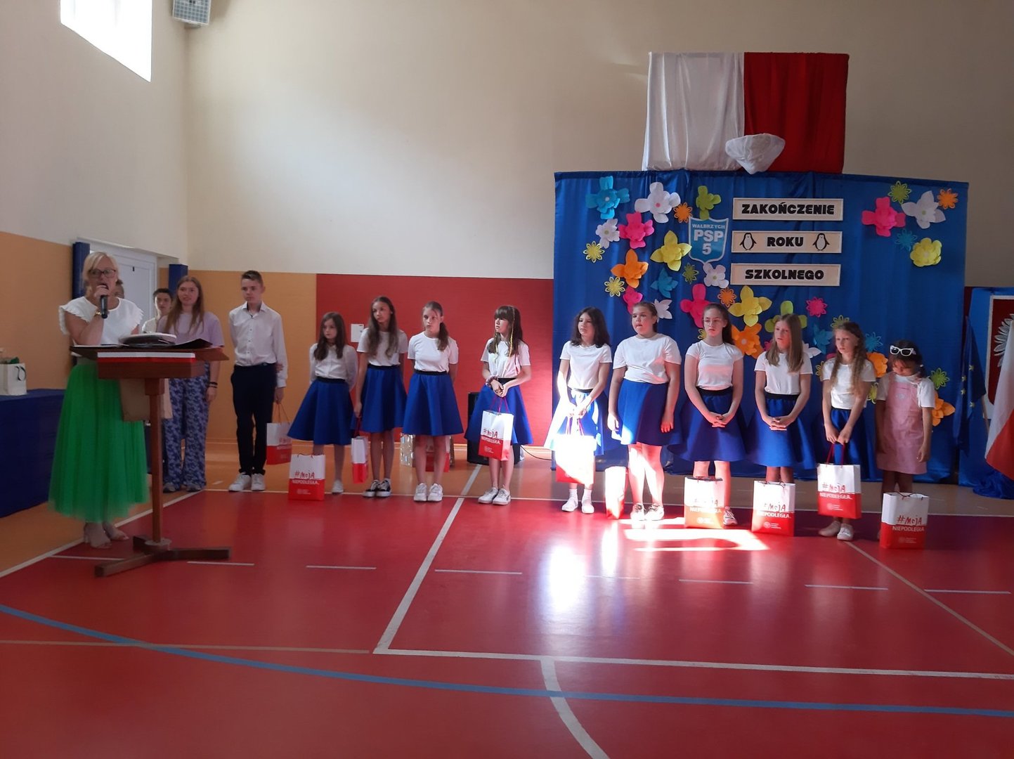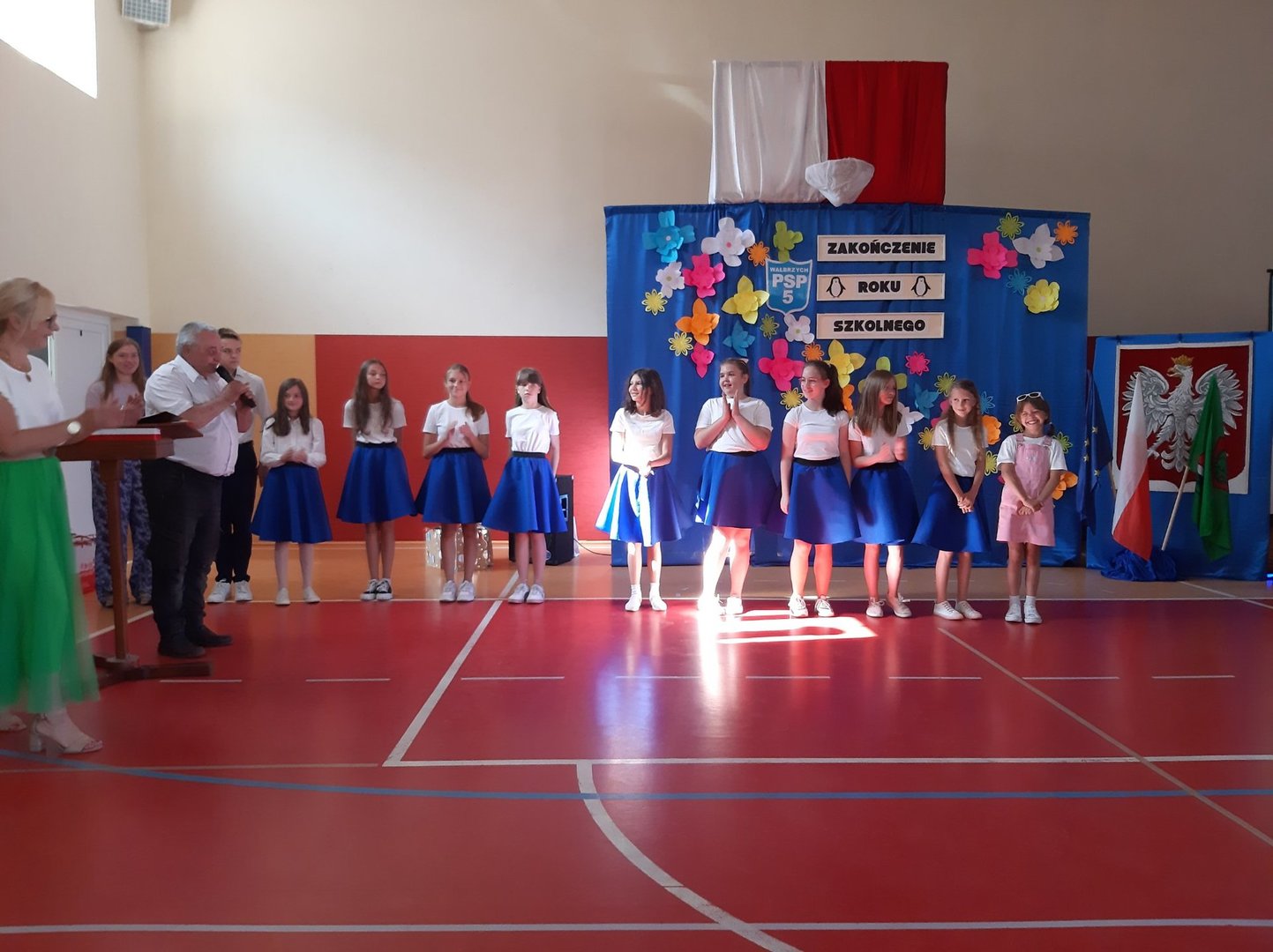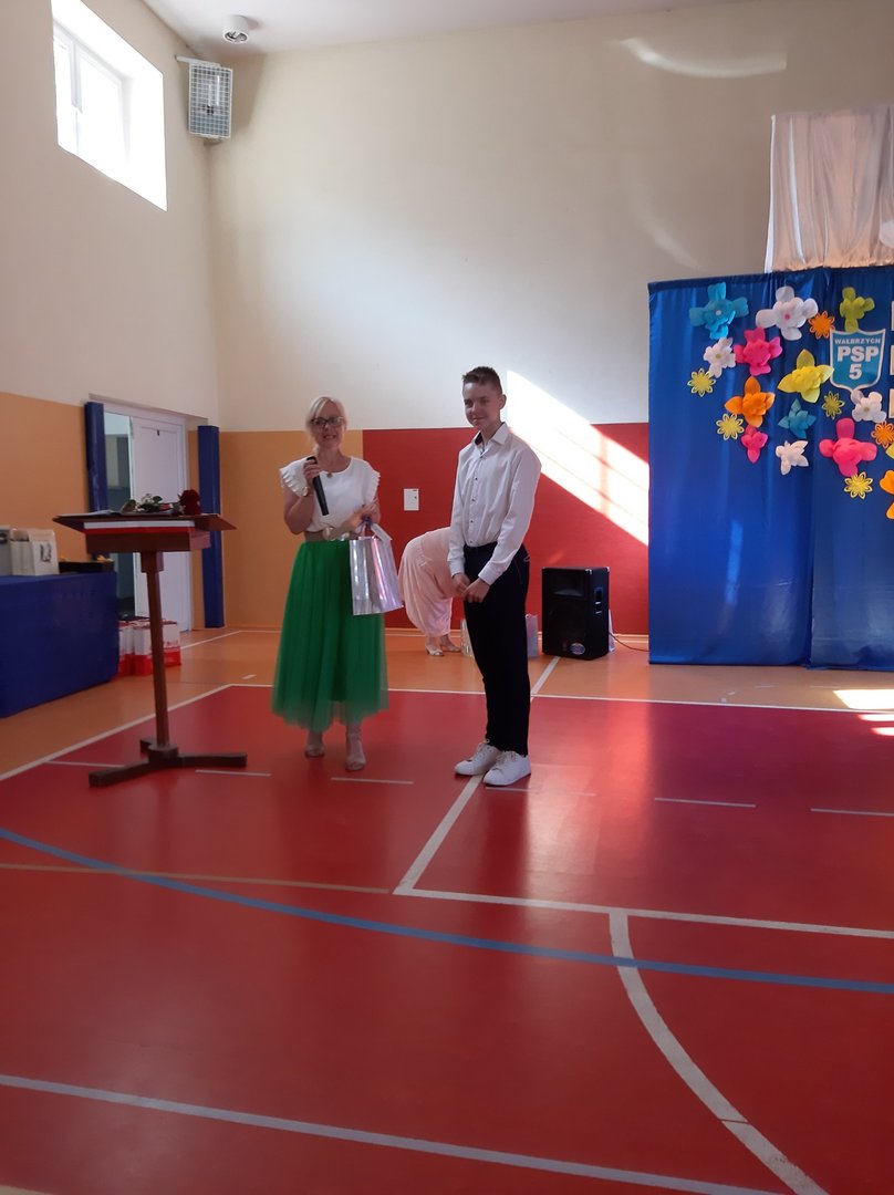 Byli już absolwenci w tym uroczystym dla nich dniu nie tylko odebrali świadectwa, nagrody i dyplomy za wysokie wyniki w nauce, wzorowe i bardzo dobre zachowanie, konkursy, zawody sportowe i działalność wolontariacką, ale mieli także okazję spotkać się z Panem Markiem Krówką - "przyjacielem szkoły", który przygotował dla zespołu wokalnego PSP nr 5 im. Aliny i Czesława Centkiewiczów wyjątkowe prezenty, a dla wkraczających w nowy etap edukacyjny uczniów - moc życzeń!