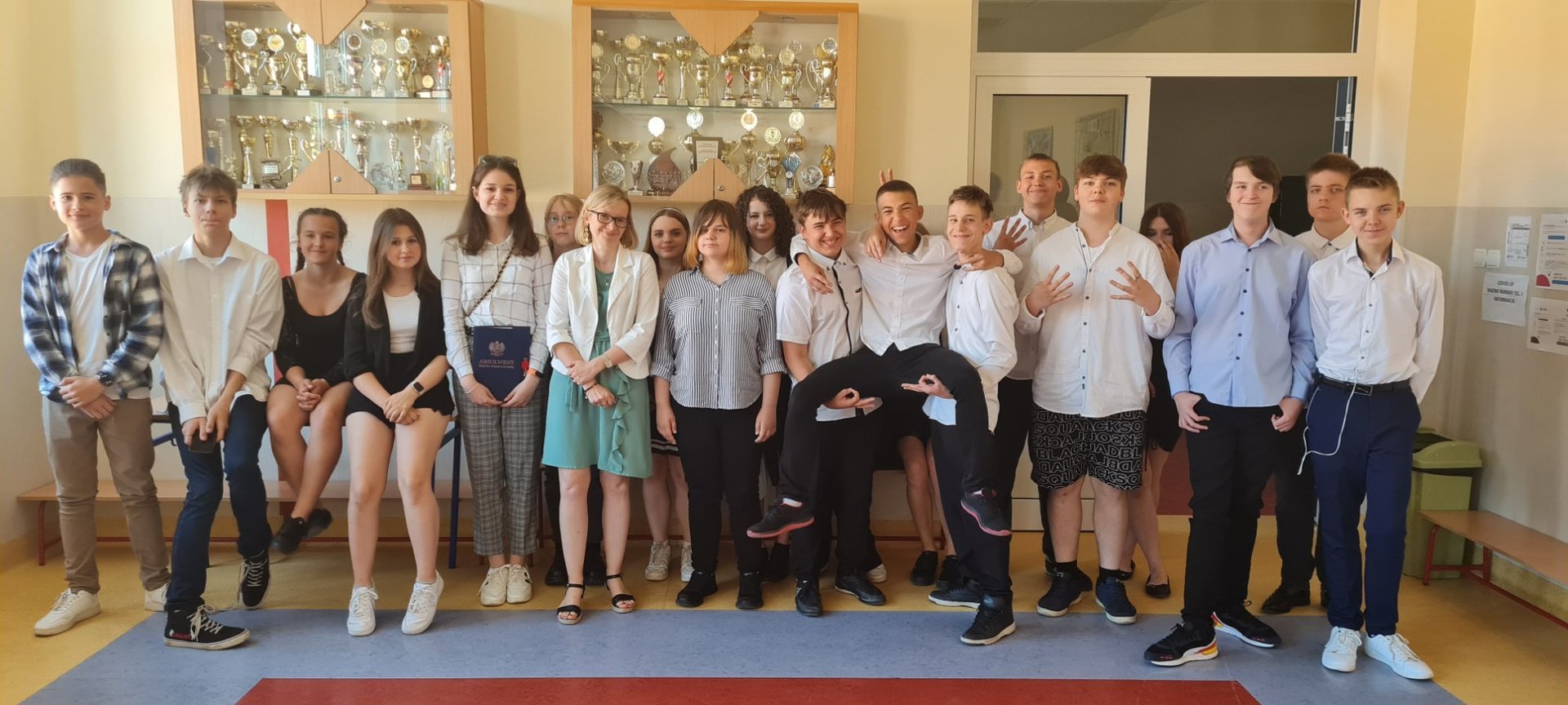 W ubiegłym tygodniu, 24.06.2022 r. z "piątką" pożegnali się uczniowie klas 8 a, 8 b, 8 c, 8 d, 8 e. Nie zabrakło łez i wzruszeń, ciepłych słów, przemówień, upominków, piosenek i uśmiechów.