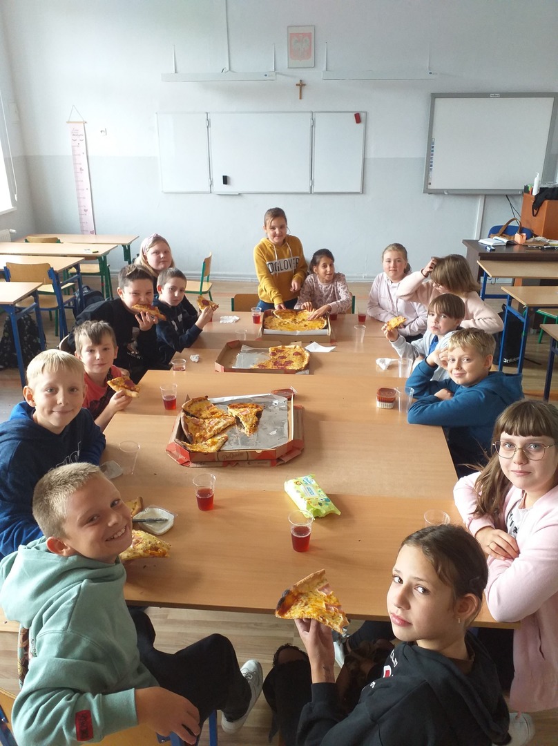 Dziewczyny nie zapomniały o złożeniu naszym chłopcom życzeń; nie zabrakło również pizzy, którą wszyscy chętnie się zajadali