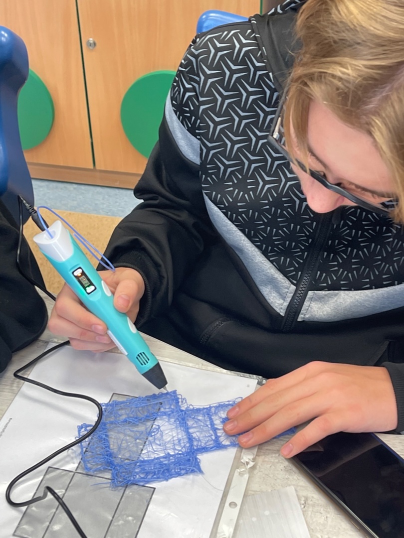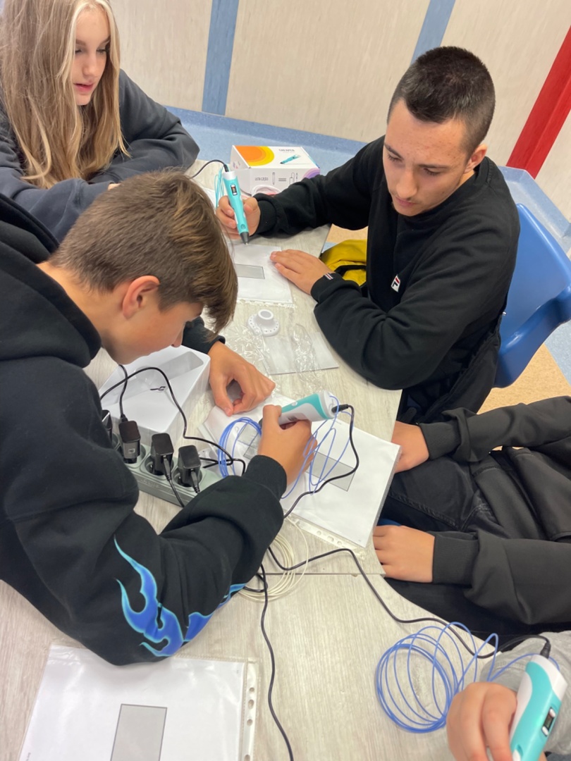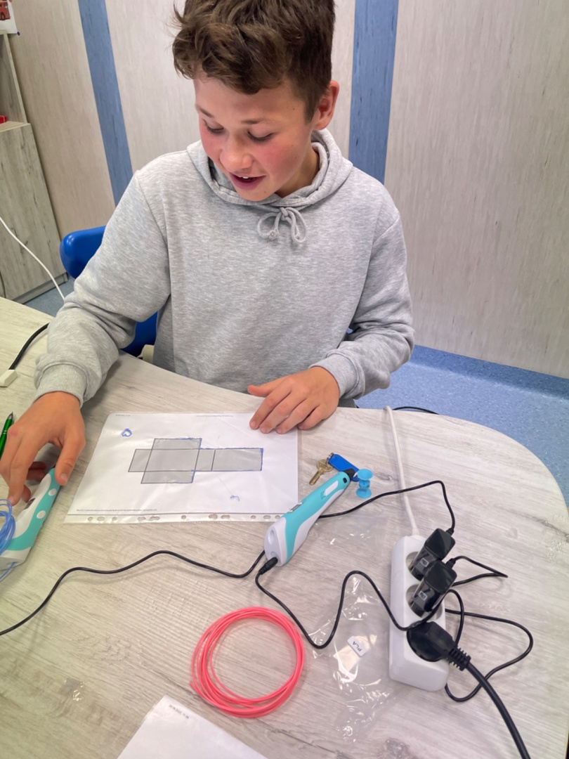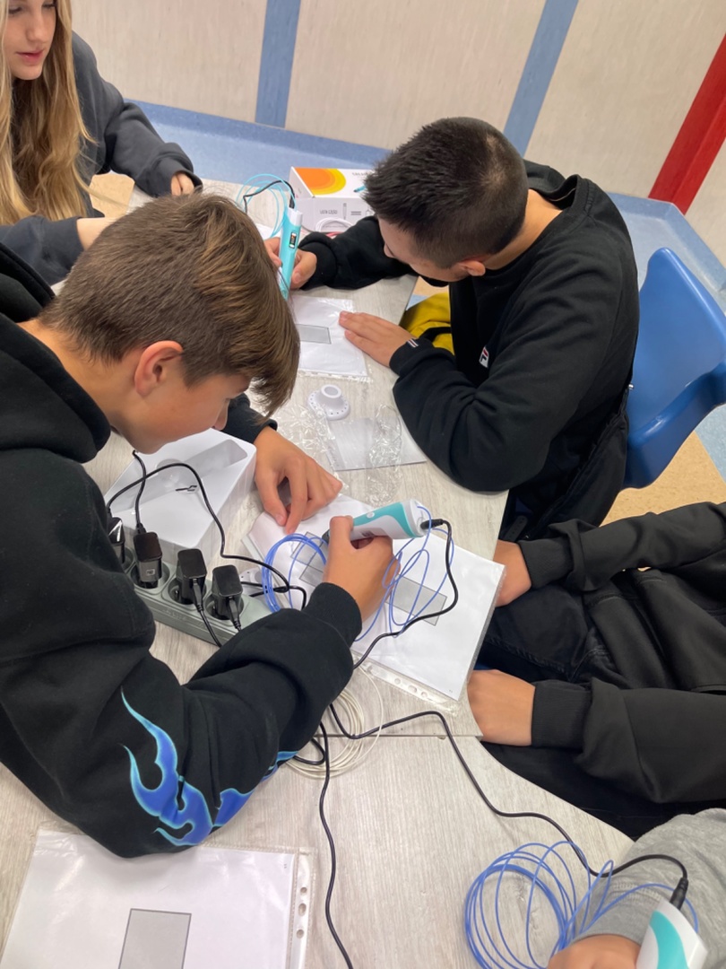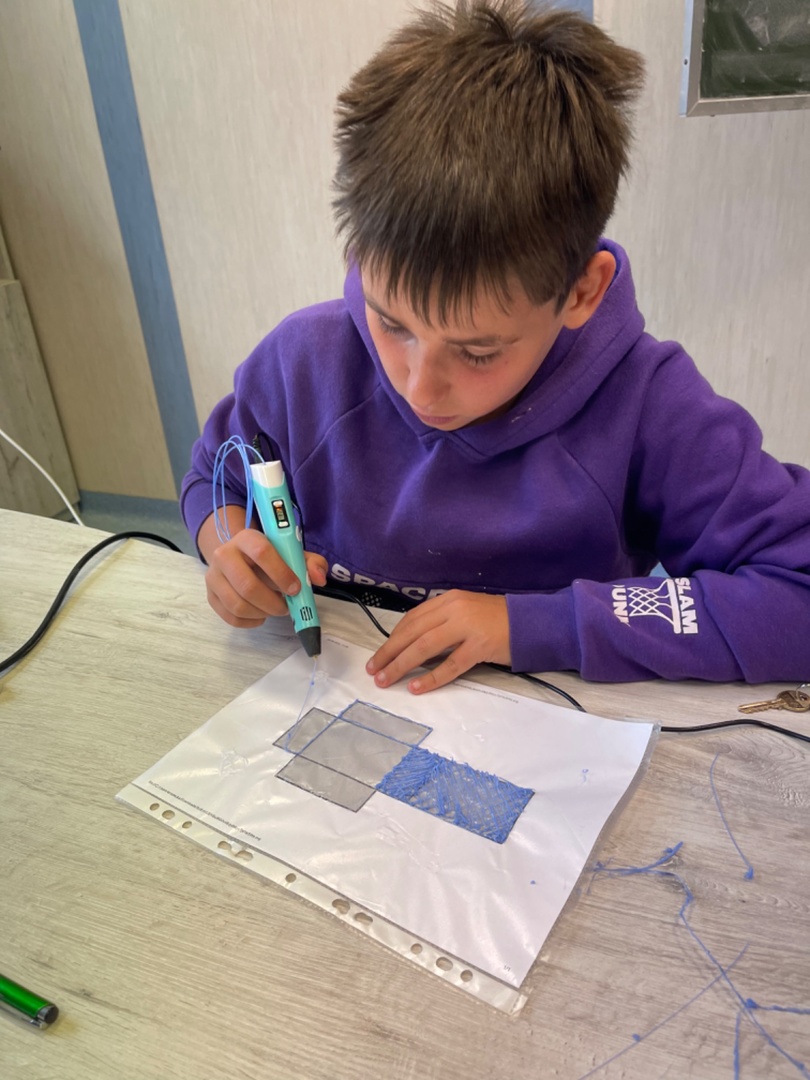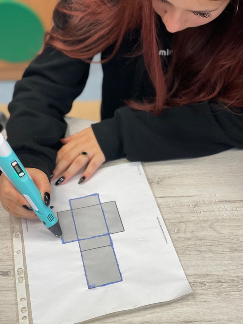 #LaboratoriaPrzyszłości W dniu 29.09.2022r. na zajęciach z matematyki klasa 8 C rysowała siatki graniatosłupów korzystając z długopisów 3D. Wszyscy uczniowie bardzo chętnie się zaangażowali do pracy. Następnie układali prostopadłościany i obliczali ich objętość i pole powierzchni całkowitej.