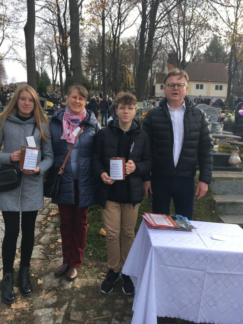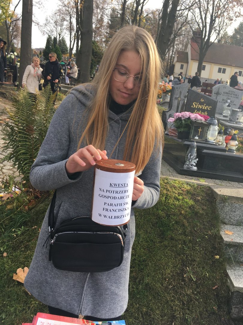 Natomiast 1 listopada, w Uroczystość Wszystkich Świętych przedstawiciele Wolontariuszy pod opieką pani Katarzyny Żurek wzięli udział w kweście na cmentarzu. We współpracy z Wolontariuszami parafialnymi zbierali datki na potrzeby gospodarcze parafii pw. św. Franciszka z Asyżu.