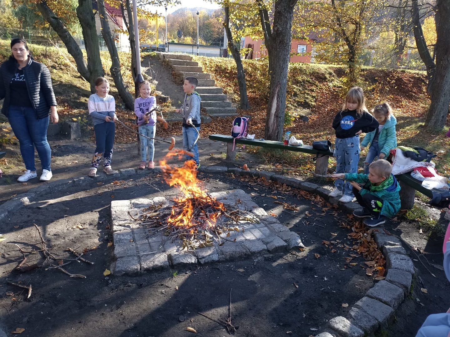 Jesień to nie tylko liście spadające z drzew i grzybobranie, ale również porządki w ogrodzie i Święto Pieczonego Ziemniaka. Uczniowie klasy 1 b i 1 c wraz z rodzicami i wychowawcami zorganizowali uroczystość pieczenia ziemniaków. Pogoda nas rozpieszczała, ciepłe słonko sprzyjało wspólnym zabawom na łonie natury. Największą radością było pieczenie kiełbasek i oczekiwanie na ziemniaki, które powolutku piekły się w ogniskowym żarze. Dzieciaki nie mogły się nadziwić, że pod czarną zwęgloną skórką ziemniaka może kryć się tak przepyszny smak...