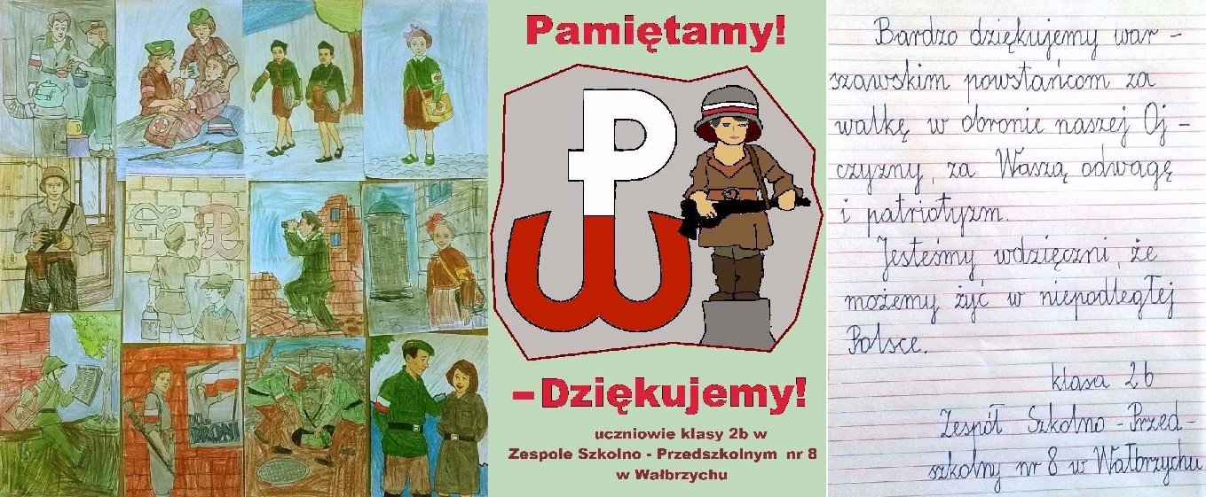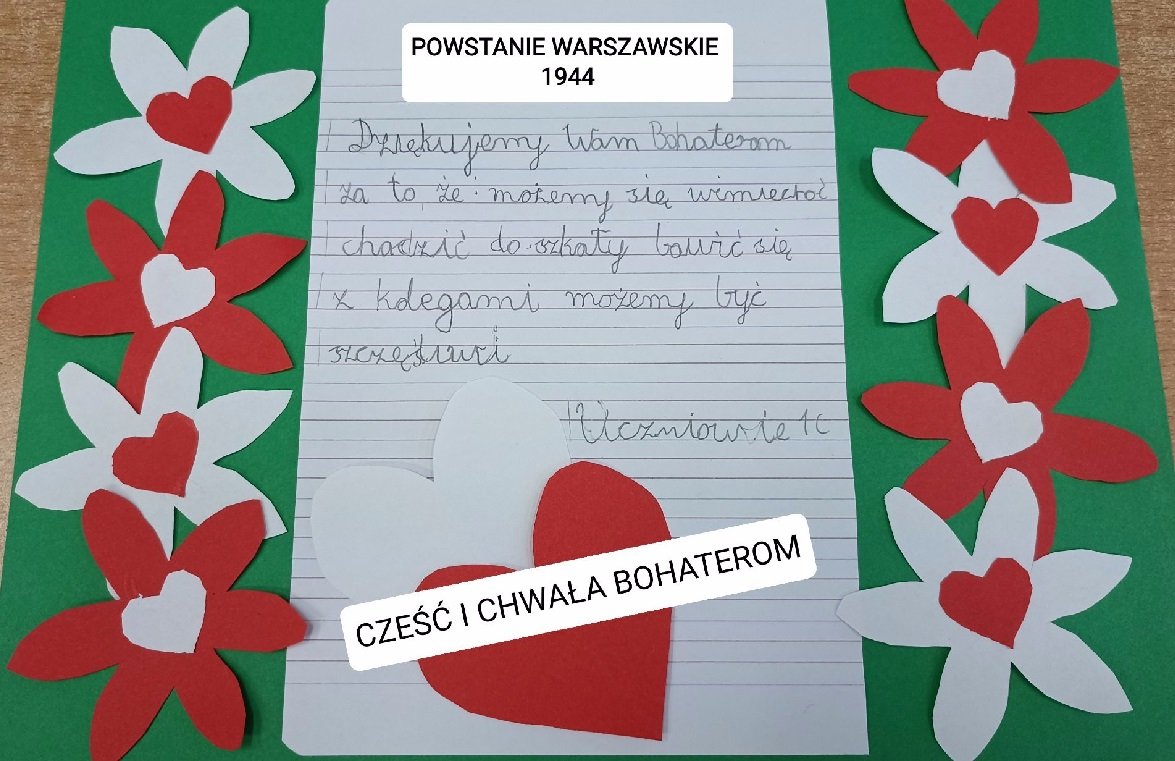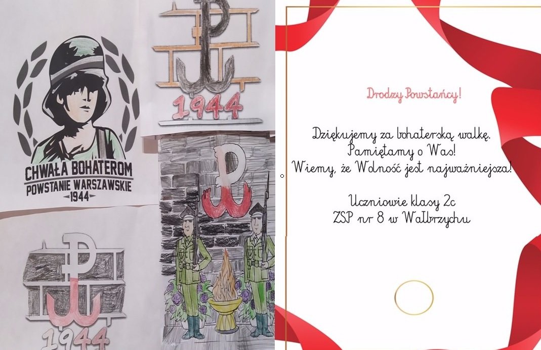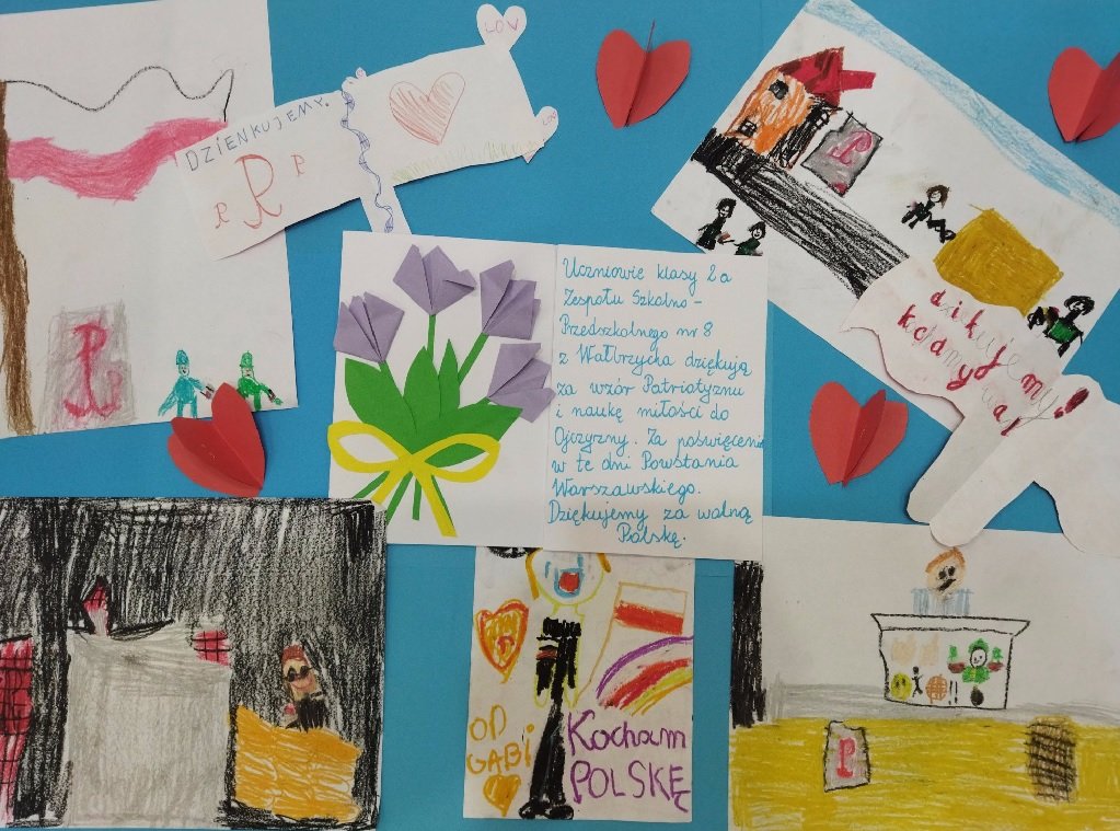 Uczniowie z grup przedszkolnych oraz klas 0-3 także brali w niej udział. Obejrzeli przedstawienie teatralne ukazujące bohaterską walkę młodych obrońców Ojczyzny, rysowali symbole Polski Walczącej, składali słowa podziękowań bohaterom Powstania Warszawskiego. W tym roku podziękowania zostały wysłane drogą elektroniczną na stronę organizatora, gdzie są widoczne dla każdego odwiedzającego ten portal.