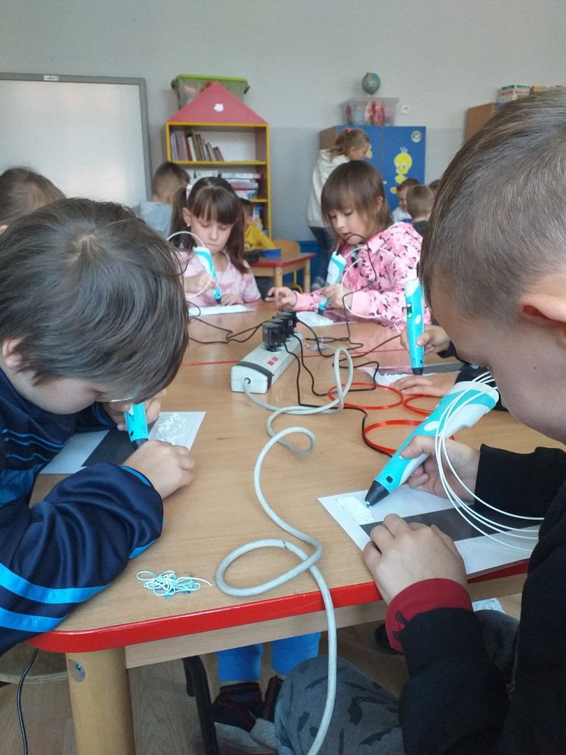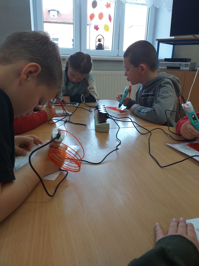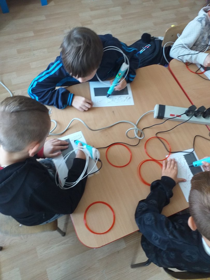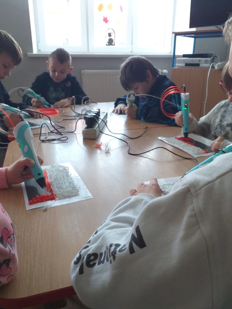 W ramach programu Laboratoria Przyszłości uczniowie klas młodszych uczęszczający na świetlicę szkolną korzystali z długopisów 3D. Pierwsze próby pracy z tym sprzętem zakończyły się sukcesem.