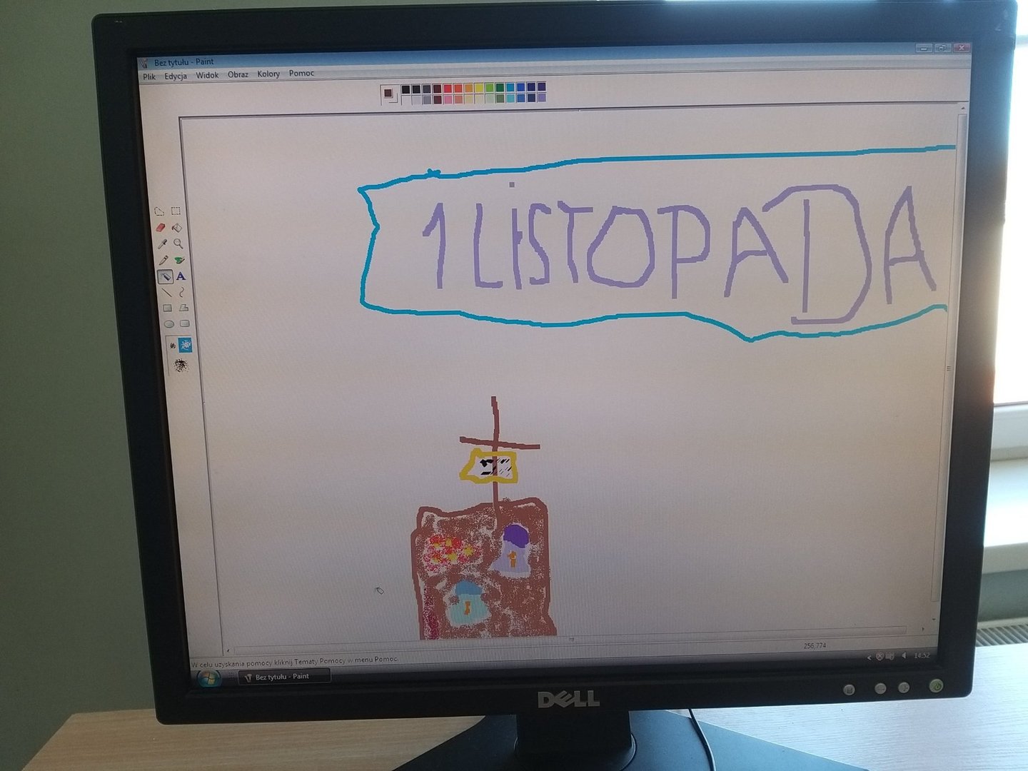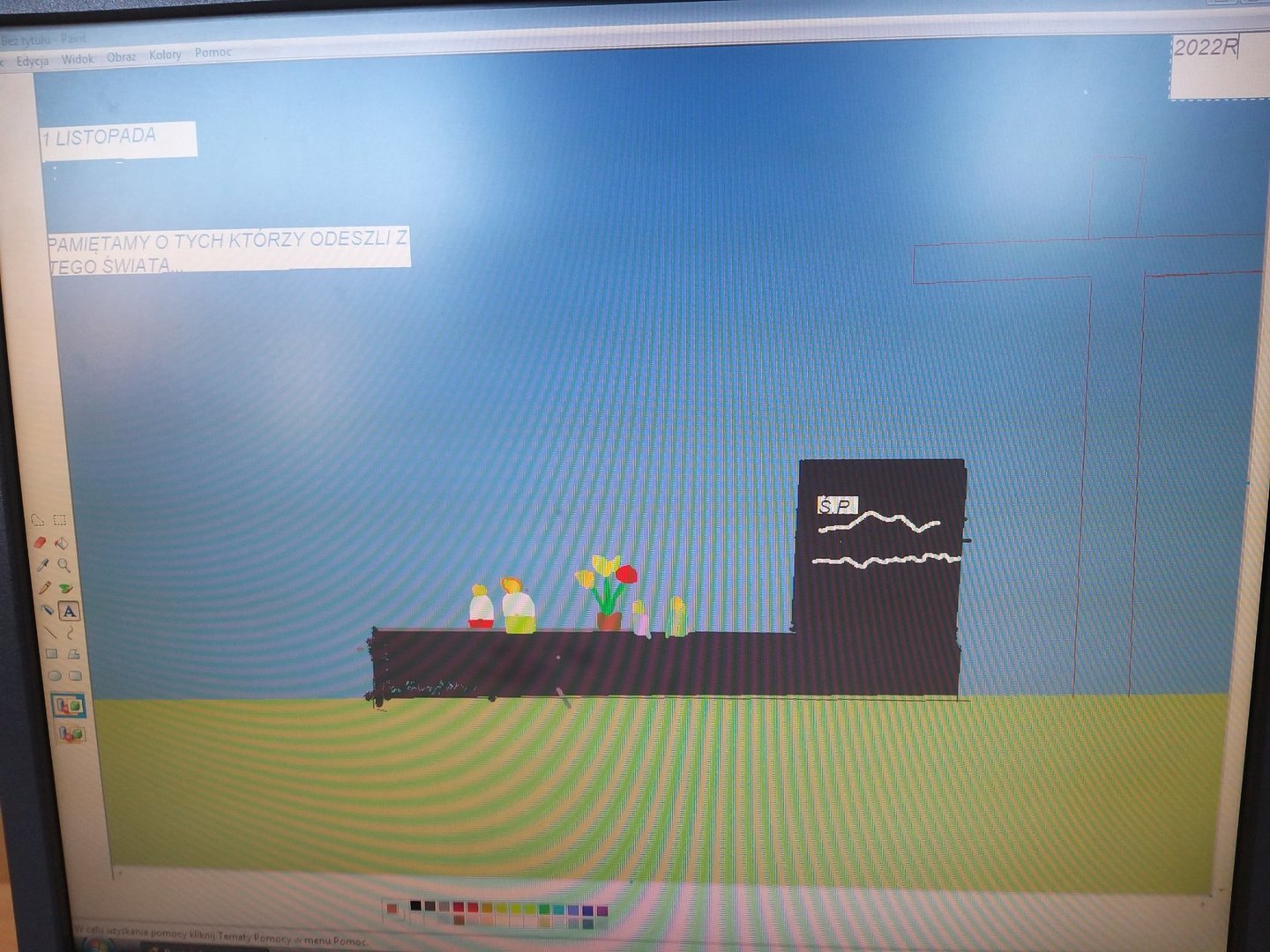 2.11.2022 na lekcji informatyki dzieci pracowały w programie graficznym PAINT - tworzyły prace plastyczne nawiązujące do czci i szacunku dla osób zmarłych.