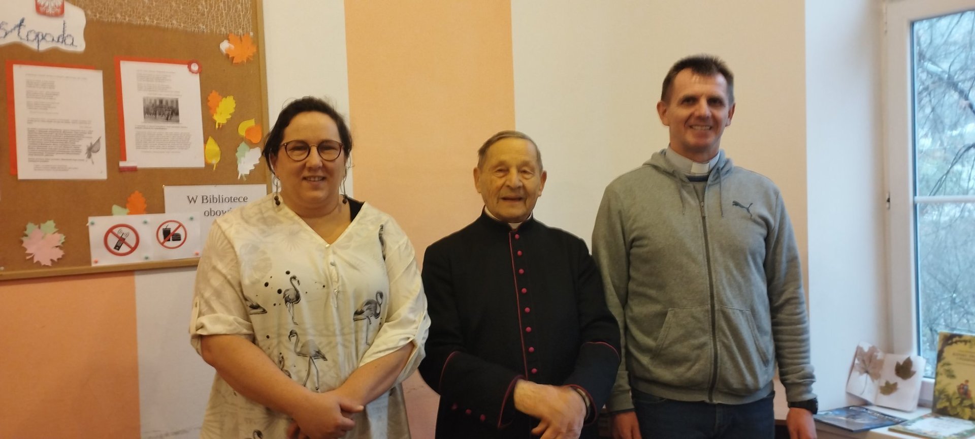 W dniu 18 listopada, gościliśmy w bibliotece szkolnej księdza Prałata Stanisława Pająka z Parafii pw. Najświętszego Serca Jezusowego w Wałbrzychu. Duchowny zainspirował nas swoją osobą, aby jeszcze więcej wiedzieć z naszej, całkiem niedalekiej przeszłości. Ksiądz jest Sybirakiem – i opowieści o Syberii to był główny cel Jego wizyty na żywej lekcji historii u nas w szkole.