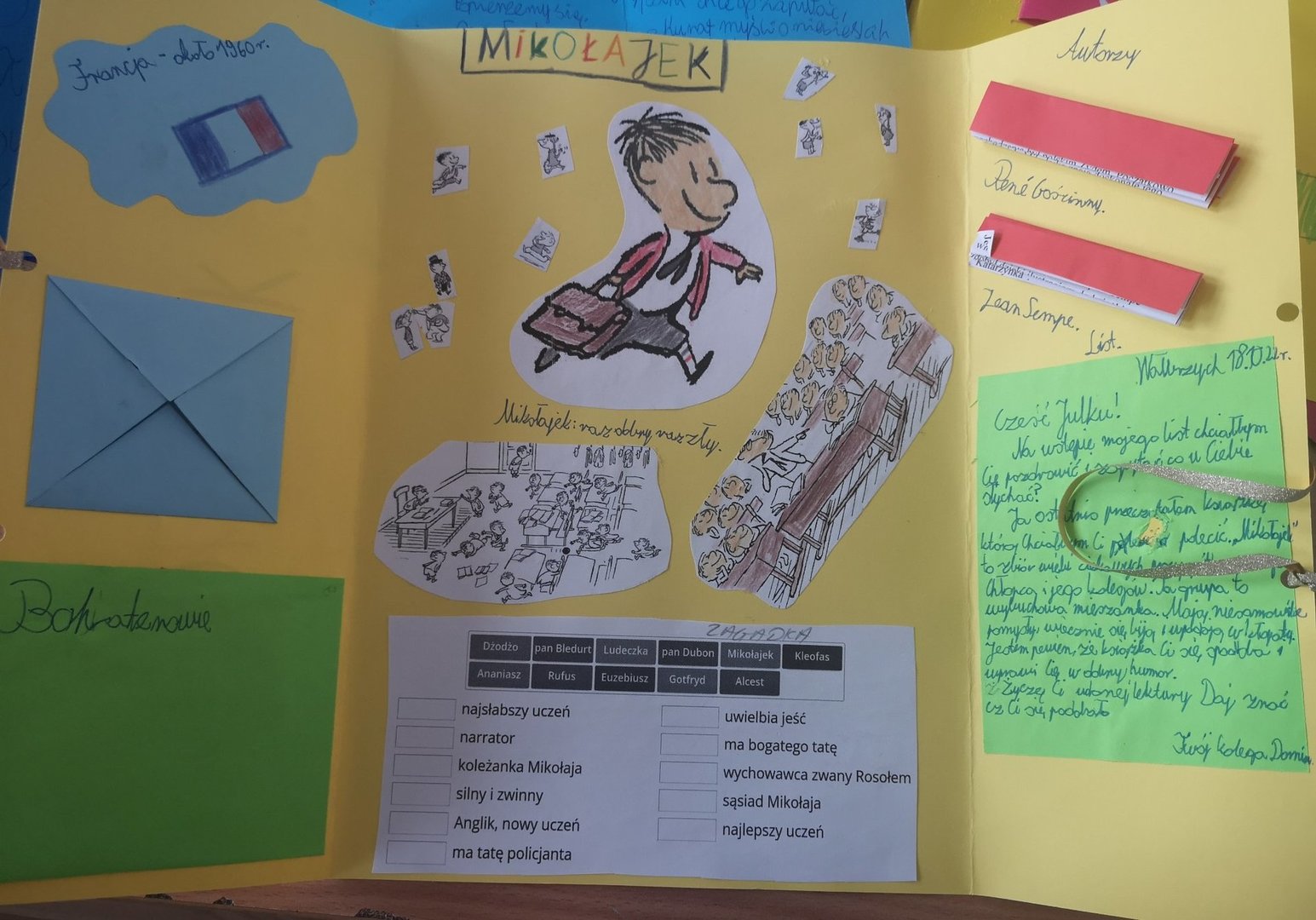 W ramach projektu realizowanego na zajęciach języka polskiego uczniowie klasy 4b podsumowali pracę z lekturą „Mikołajek”, tworząc lapbooki.