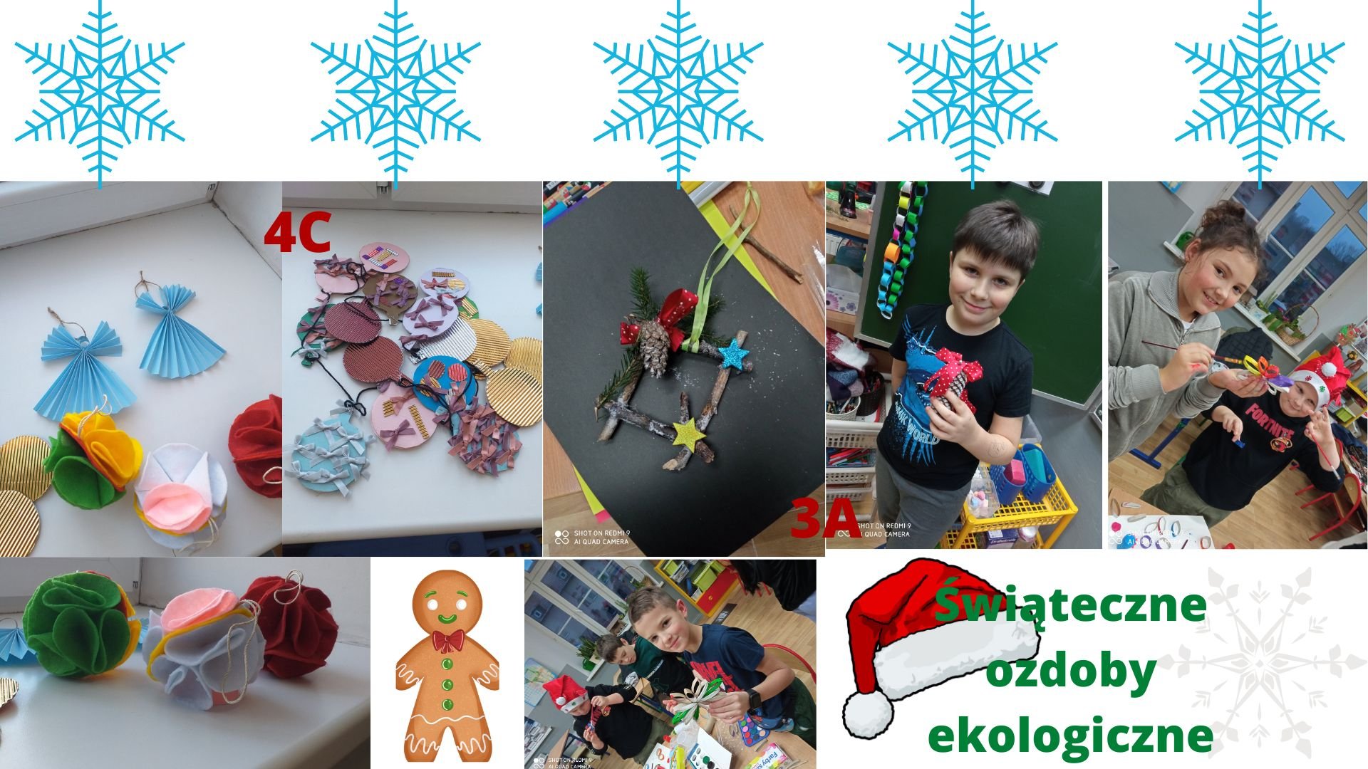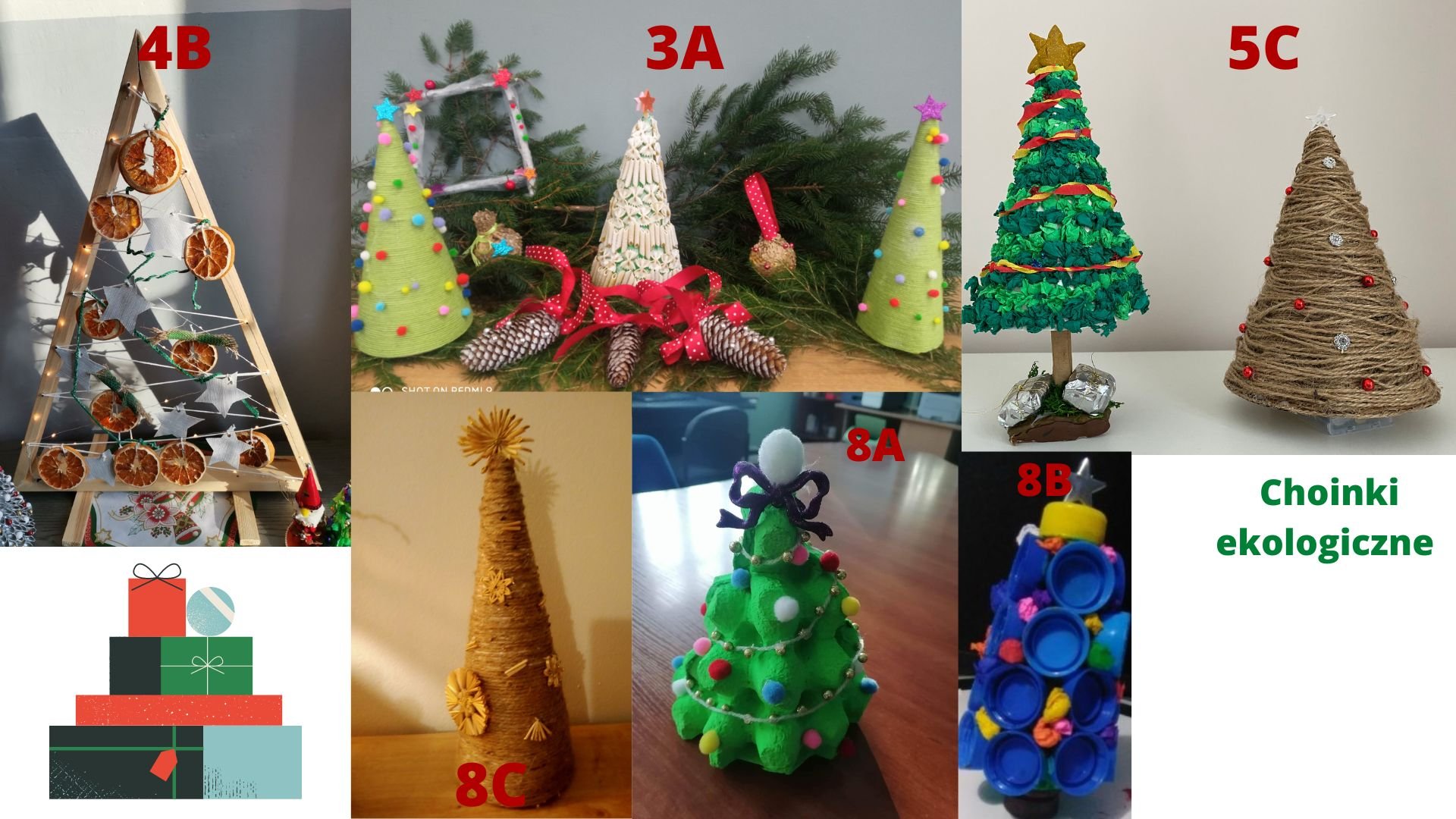 W grudniu 2022 roku uczniowie klas 1- 8 wraz z rodzicami przygotowali choinki ekologiczne oraz ekologiczne ozdoby na choinkę.