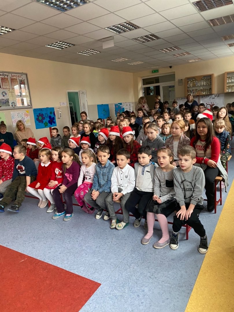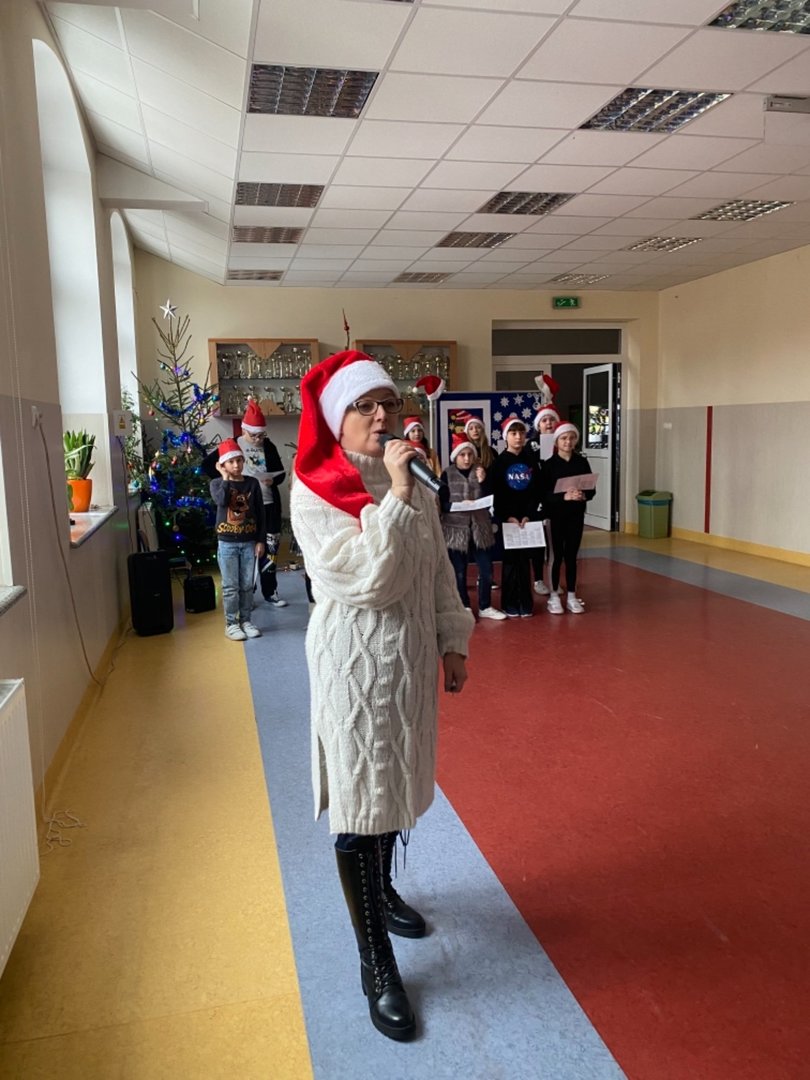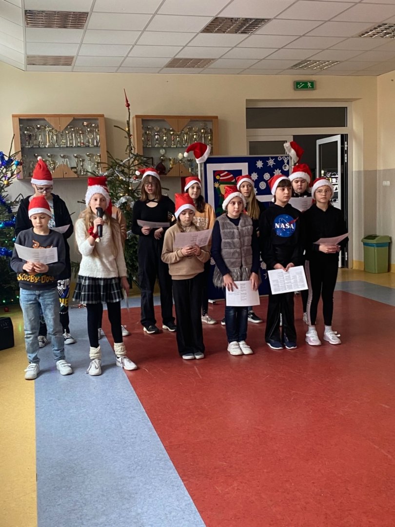 W dniu 22 grudnia w naszej szkole odbył się koncert kolęd przygotowany przez p. Agatę Guzek oraz zespół muzyczny naszej szkoły. Rozpoczęliśmy tym samym okres świętowania i przenieśliśmy się w atmosferę zbliżających się Świąt Bożego Narodzenia, którym towarzyszy piękna tradycja śpiewania kolęd. Koncert rozpoczęliśmy piękną pastorałką z repertuaru Skaldów pt. "Złota Jerozolima", wysłuchaliśmy również przepięknego utworu Zbigniewa Preisnera "Całą noc padał śnieg", który zaśpiewała uczennica klasy 8c Oliwia Mierzwa, ale nie zabrakło również tradycyjnych, wszystkim znanych kolęd takich, jak "Lulajże Jezuniu", "Przybieżeli do Betlejem", czy "Dzisiaj w Betlejem", którą to kolędę odśpiewali wspólnie wszyscy uczestnicy koncertu. Po koncercie Pani Dyrektor podziękowała uczniom za przepiękny występ oraz złożyła serdeczne życzenia świąteczne i noworoczne.