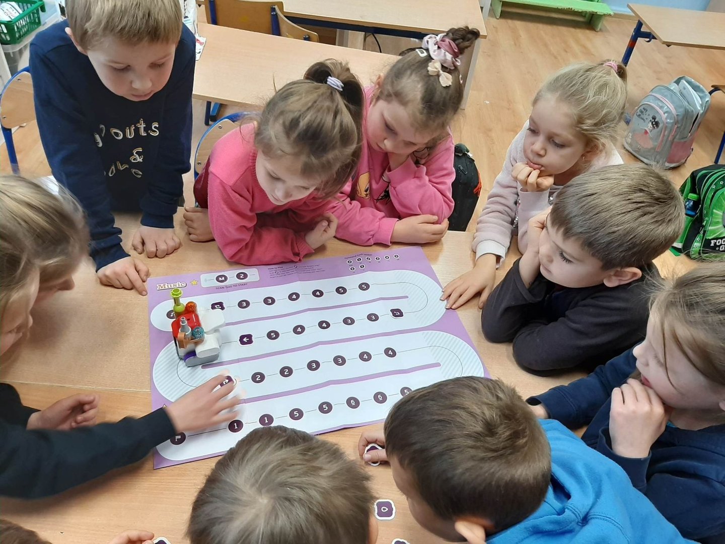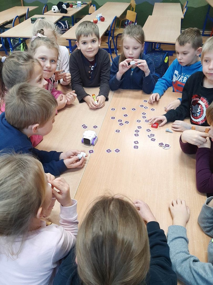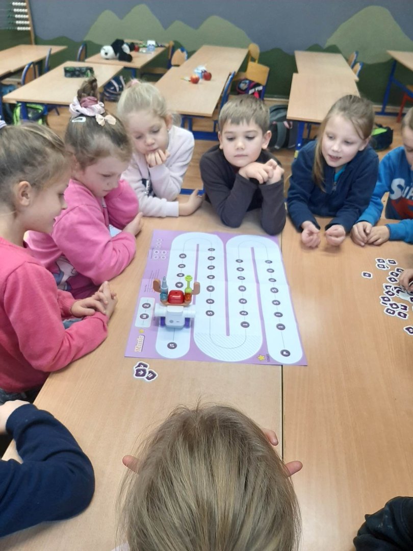 Kolejny raz lekcja muzyki dostarczyła klasie 1 b wielu niezapomniachy wrażeń i muzycznych uniesień. Jak najlepsi wirtuozi zaplanowaliśmy przejazd robota w rytm melodii "Panie Janie". Dzieciaki świetnie rozróżniały dźwięki wygrywane przez robocika i planowały kolejne muzyczne przejazdy.